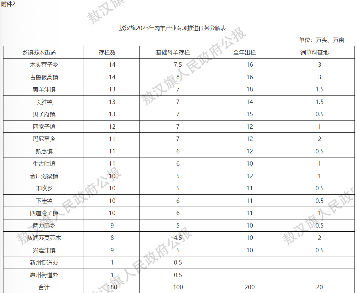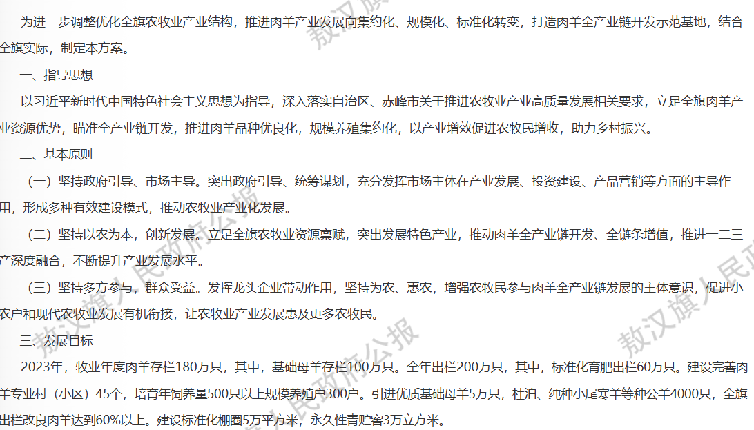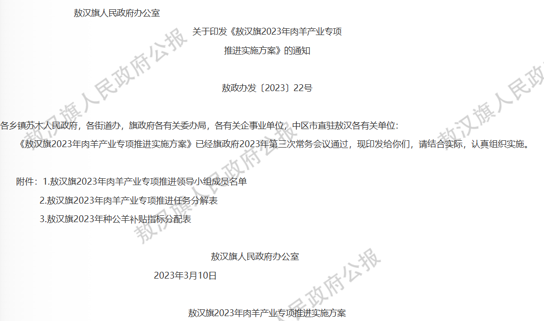 敖汉旗人民政府办公室关于印发《敖汉旗2023年肉羊产业专项推进实施方案》的通知