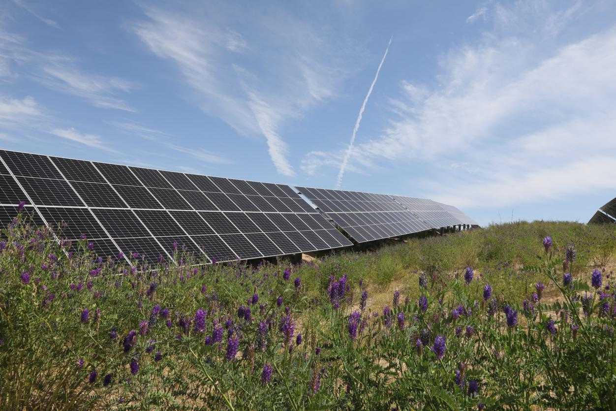 敖润苏莫苏木位于科尔沁沙地南缘,辖区土地沙化严重,农牧民生产生活受到严重影响。为深入贯彻践行习近平生态文明思想,近年来苏木带领辖区群众向茫茫科尔沁宣战,引进光伏治沙项目,用科技赋能生态建设,如今在一排排蓝色的光伏矩阵下,牧草正汇成着绿色“海洋”。