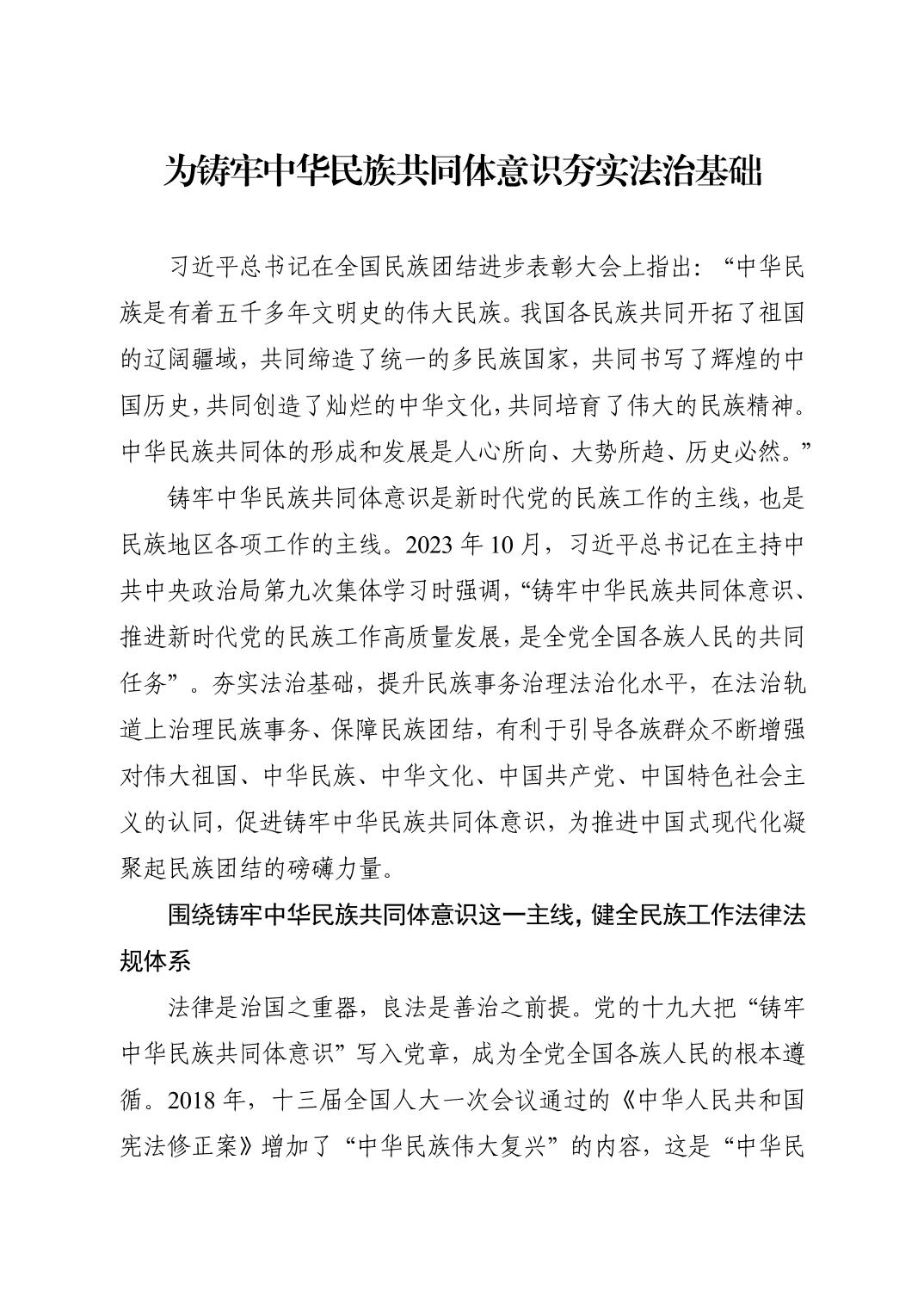 为铸牢中华民族共同体意识夯实法治基础