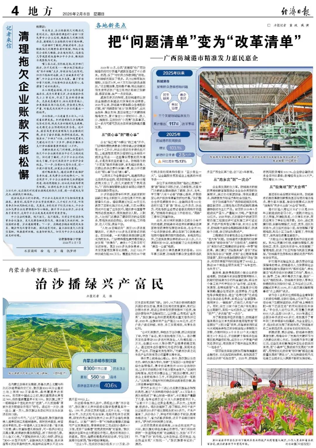 “过去5年,完成防沙治沙任务17.17万亩,沙区生态实现质的飞跃。如今,16万亩沙棘林既是防风固沙的生态墙,更是百姓增收的致富林,我们以沙棘为抓手,联动山杏林等资源做强林下经济,推动沙棘等林产品精深加工,让沙棘、山杏变成‘金果果’。”敖汉旗林业和草原局副局长董文信告诉记者,2025年,全旗林草产业产值达16.96亿元,近万户农户通过种植、采收、务工实现增收,共享生态红利。