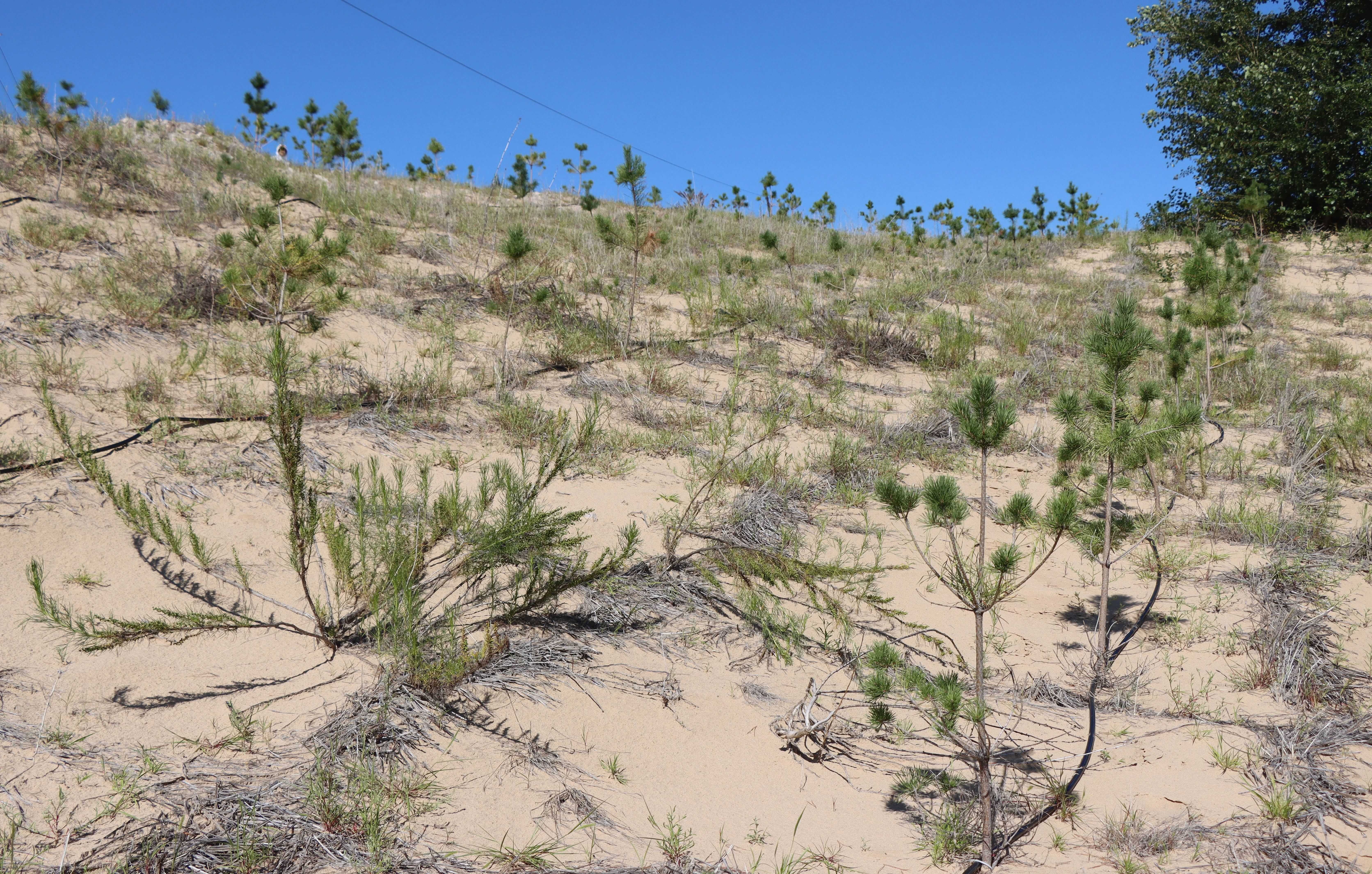 樟子松幼苗,像一个个挺立的小哨兵,迎着风沙努力生长,它们代表着希望,是未来锁住黄沙的参天屏障。
