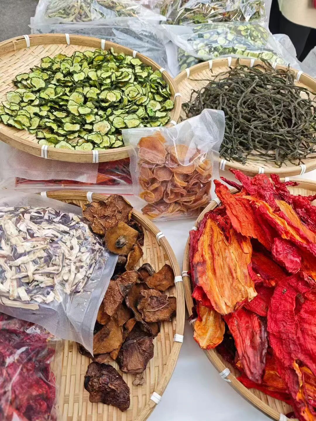 本次推介会金柱带来的“贝子山源”系列菌蔬干货涵盖四大核心品类,全链条把控品质:一是源自镇内食用菌园区的香菇和野生蘑菇,采用“低温慢烘”工艺锁鲜,保留90%以上营养成分,附加值较鲜品提升3倍以上;二是脱水蔬菜系列,包括脱水辣椒、豆角干、土豆干等,源自特色种植基地和本地村民零散种植,原料精心挑选,无添加防腐剂。