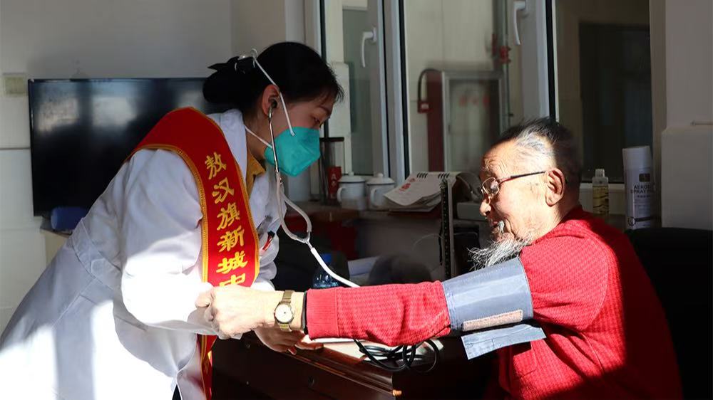 除了高跷表演,志愿者们还为老人们进行了理发和体检。理发志愿者耐心询问老人的需求,为他们精心修剪头发。医护志愿者则认真细致地为老人们进行量血压、测血糖等各项身体检查。