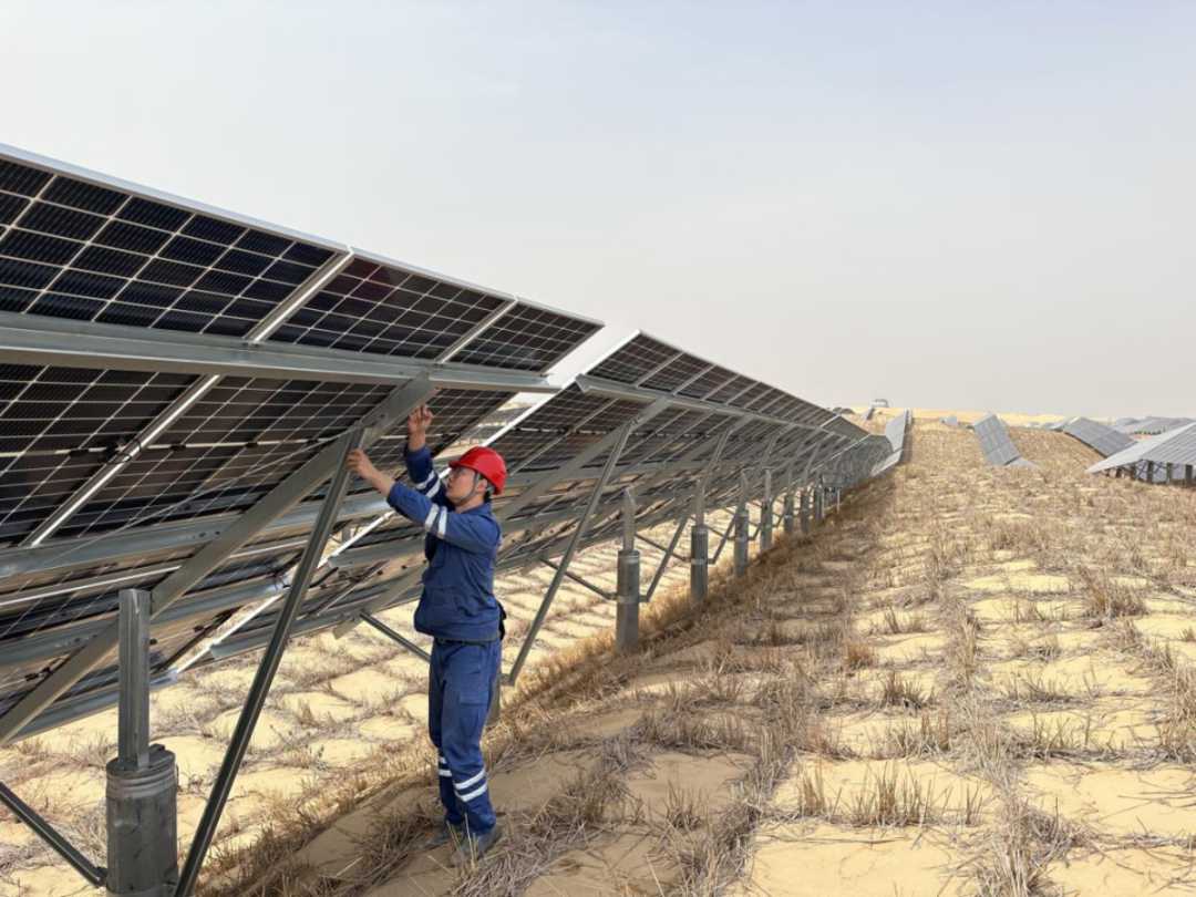 新能源企业负责项目的规划、建设、运营和维护。投资并拥有光伏发电设施,通过出售电力获得回报。生态治理企业负责土地的治理和生态恢复。采取措施,如植被种植、沙漠固沙、防风措施等。周边农牧民积极参与项目建设,项目带动20多个牧民就业,牧民暴长富说:“这个光伏治沙项目好,既改善了沙地生态环境,我们牧民又得到了实惠,通过打零工和牧草喂牛羊,年收入2万多元。”