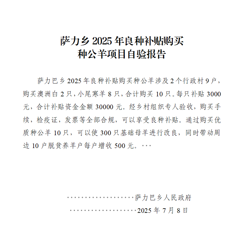 萨力乡2025年良种补贴购买种公羊项目自验报告