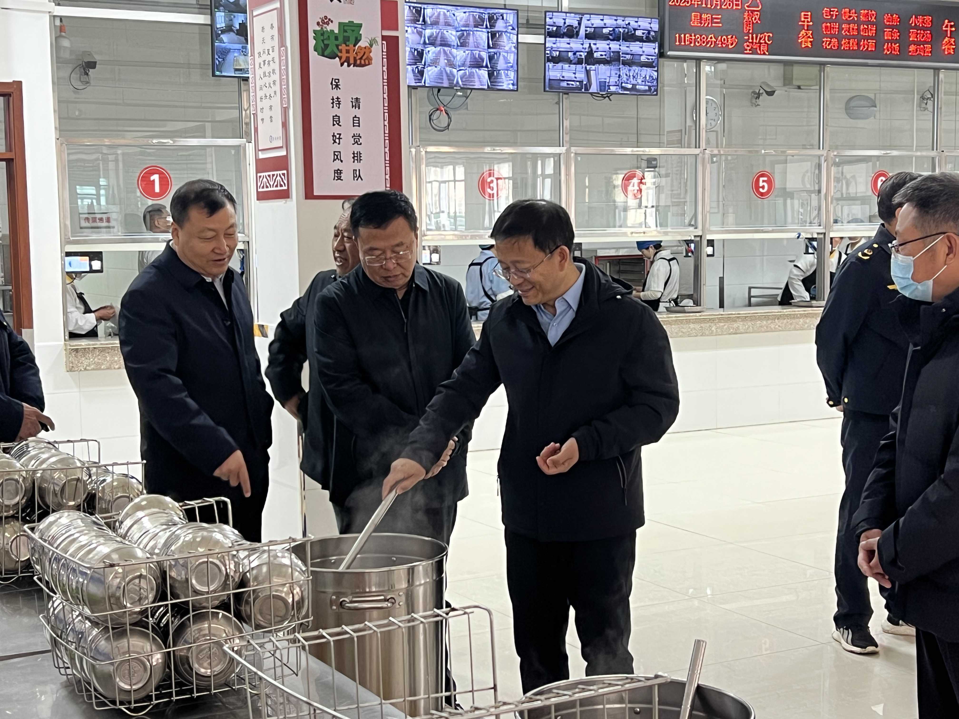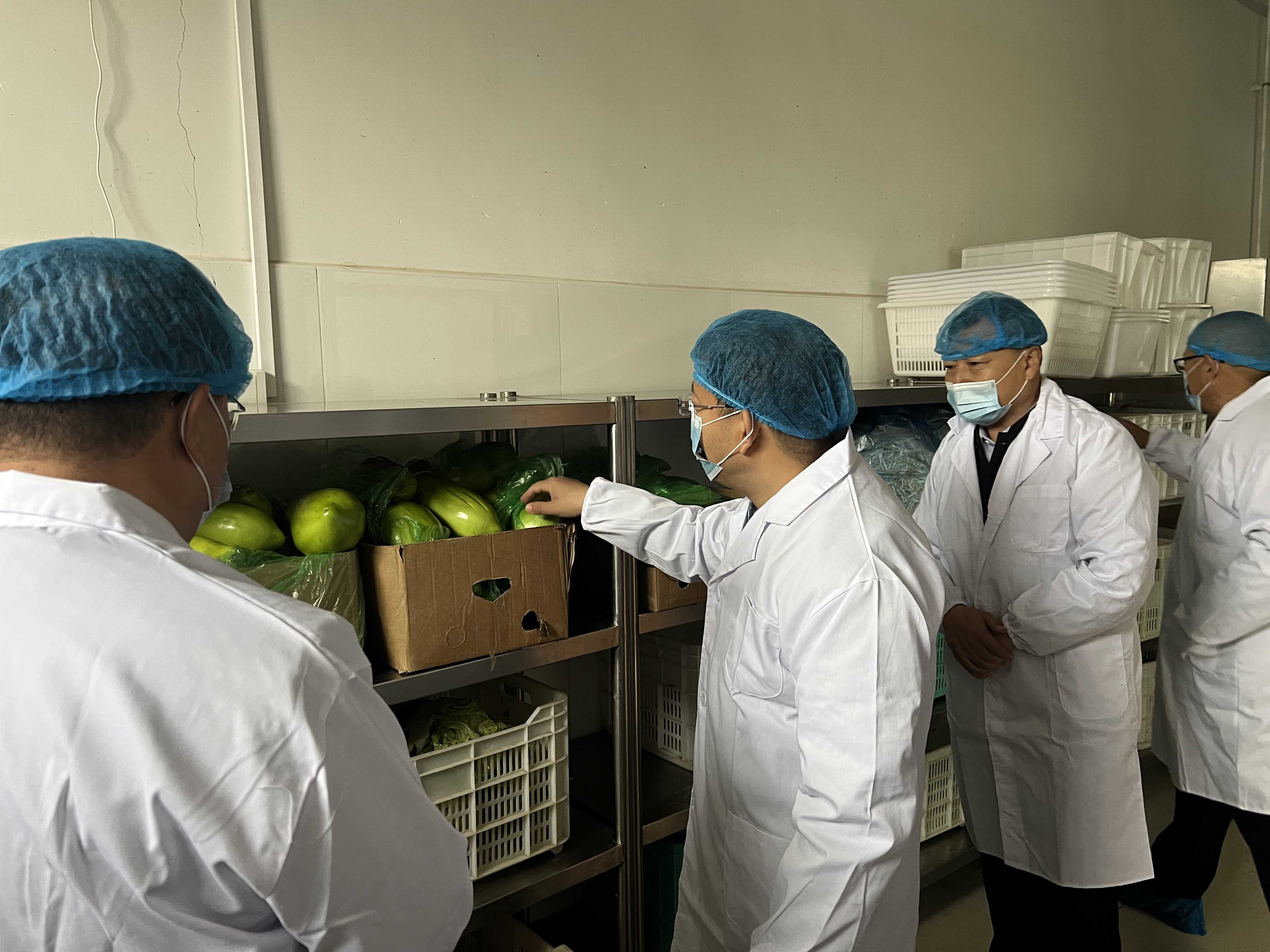 王文龙一行深入食堂后厨、仓储间、洗消间、配餐区等关键区域,通过现场查看、询问交流、翻阅台账等方式,对食品安全管理制度的落实情况进行全面细致的督导。重点检查了主体责任落实、原料采购与储存、加工制作过程、场所与设备卫生、从业人员管理等方面,详细查阅了各学校"日管控、周排查、月调度"工作记录台账,仔细查看了食品原料进货查验和储存条件,严格检查了食品加工操作流程,确保各项工作符合规范要求。