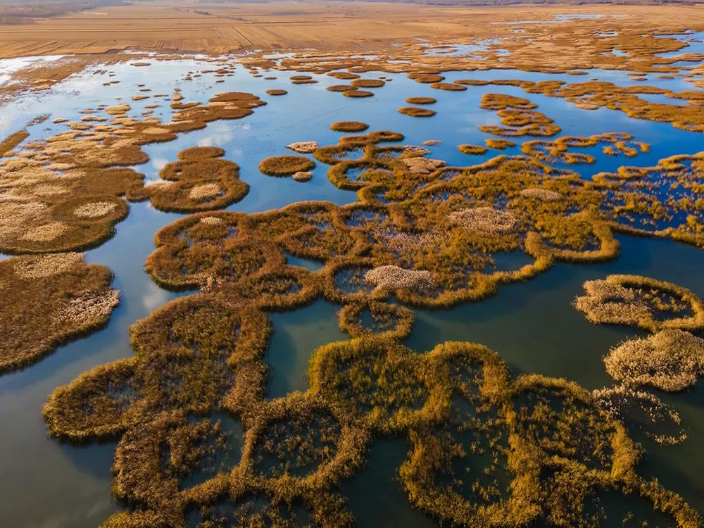 乌兰勿苏水库小微湿地秋季航拍图。(摄影:郝军)