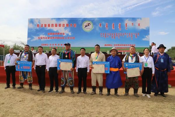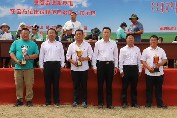 经过激烈角逐,格格日呼获博克项目一等奖,那仁朝格图获十公里赛马一等奖,滕和获走马项目一等奖,布仁其其格获射箭项目一等奖,敖润苏莫嘎查获拔河项目一等奖,敖润苏莫苏木负责人分别为获奖者颁奖。