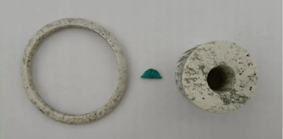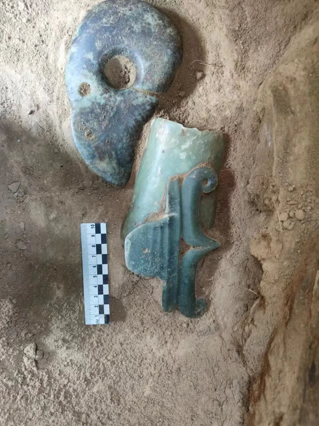 郑家沟遗址,位于张家口市宣化区郑家沟村西北坡地上。2023年发掘约500平方米,出土器物150余件,其中玉器50件,包含玉猪龙、三联璧、玉鸮、玉环、玉斧等红山文化典型器物。发现人骨地点30余处,多为二次葬;祭祀坑20余座,可能作为祭祀之用。初步判断该遗址为红山文化晚期积石冢遗存。该遗址的发现为研究红山文化遗址分布、丧葬祭祀习俗以及红山文化和冀西北史前文化的交流与互动等重要学术问题提供了一批新材料。