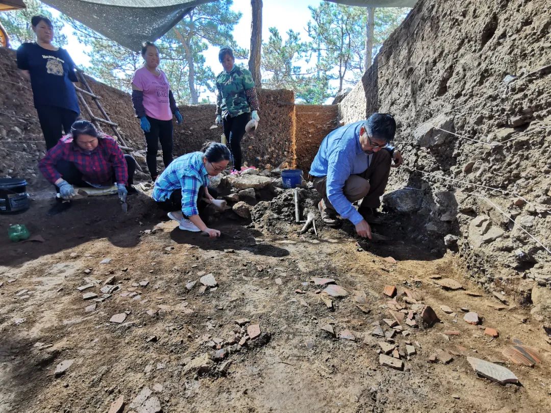 东山头遗址,位于承德市平泉市台头山镇大营子村北。2023年度发掘约800平方米。新发现微型祭坛、多层燎祭坑、陶片平铺堆积等遗存,通过勘探在下层垫土下发现了10余座石板墓,判断遗址性质为积石冢。同时,在东南部区域发现有环壕,为居住区的存在提供了线索。结合这两年考古工作,推测遗址由祭祀区和生活区两部分组成,遗址的年代、文化特征与牛河梁遗址相当,为研究红山社会文明化进程提供了具有祭祀、生活双重属性的遗址材料。