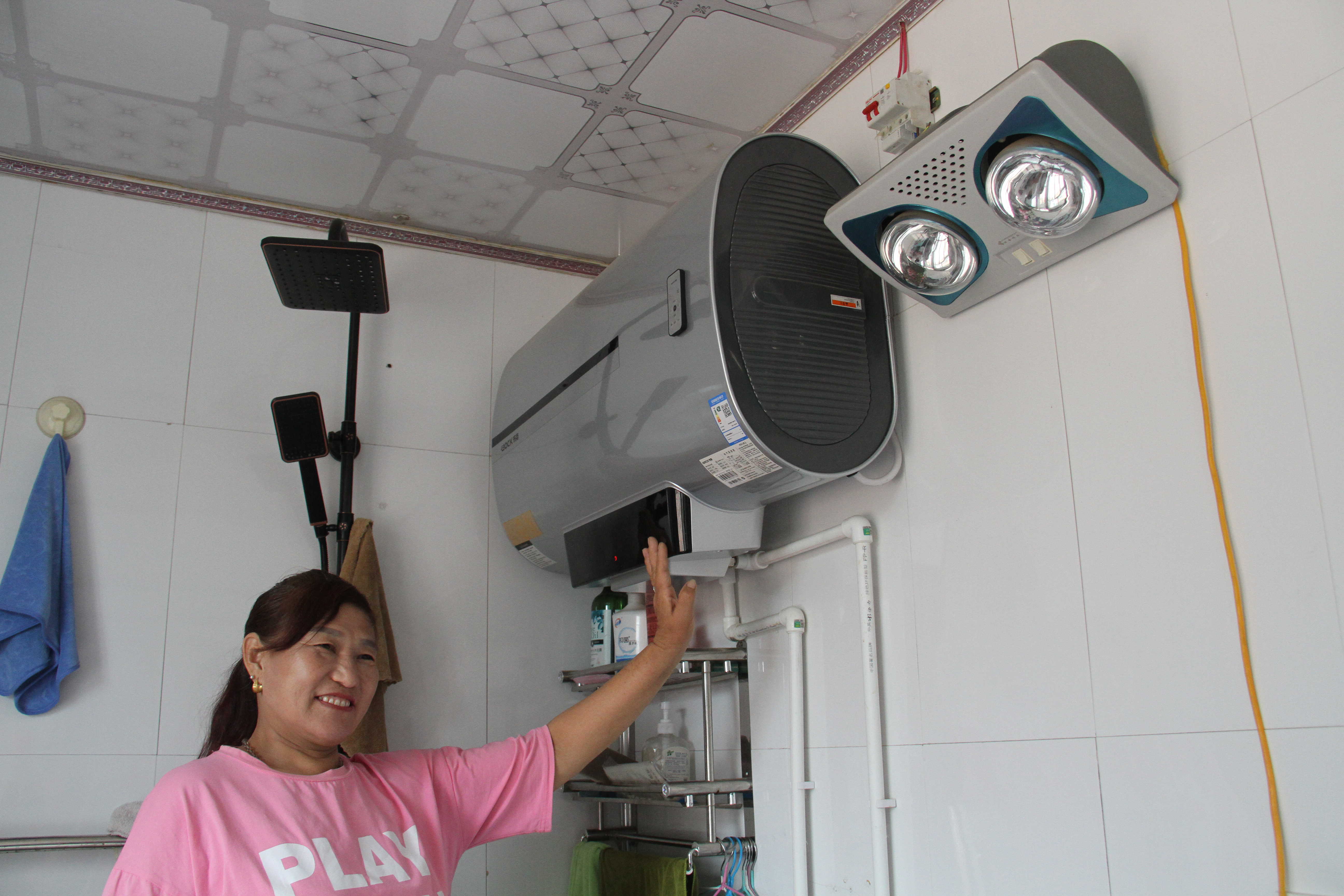 在李月红家各个屋转了一遍,可真是与城里人不相上下。自来水直接接进水缸,水龙头还接进一个大铁锅,用上太阳能洗浴,屋里用上了水冲厕所,生活实现供水现代化。