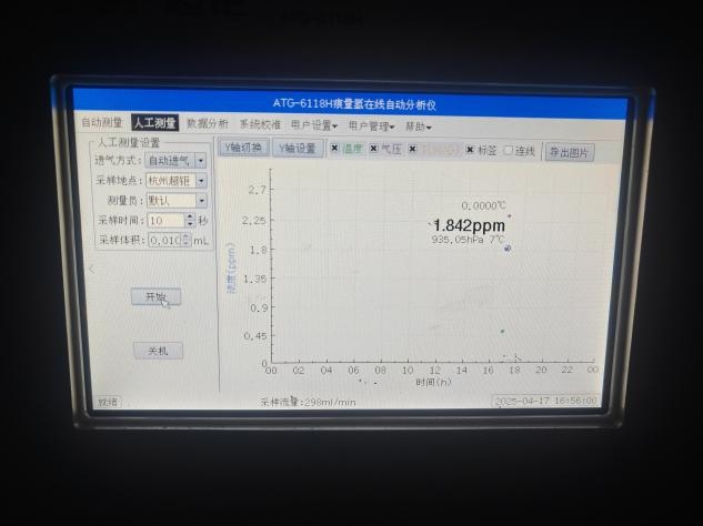 旗中心人员到监测站点后与市中心人员进行视频沟通,在市中心的指导下查验设备是否正常运行,并检测空气浓度。