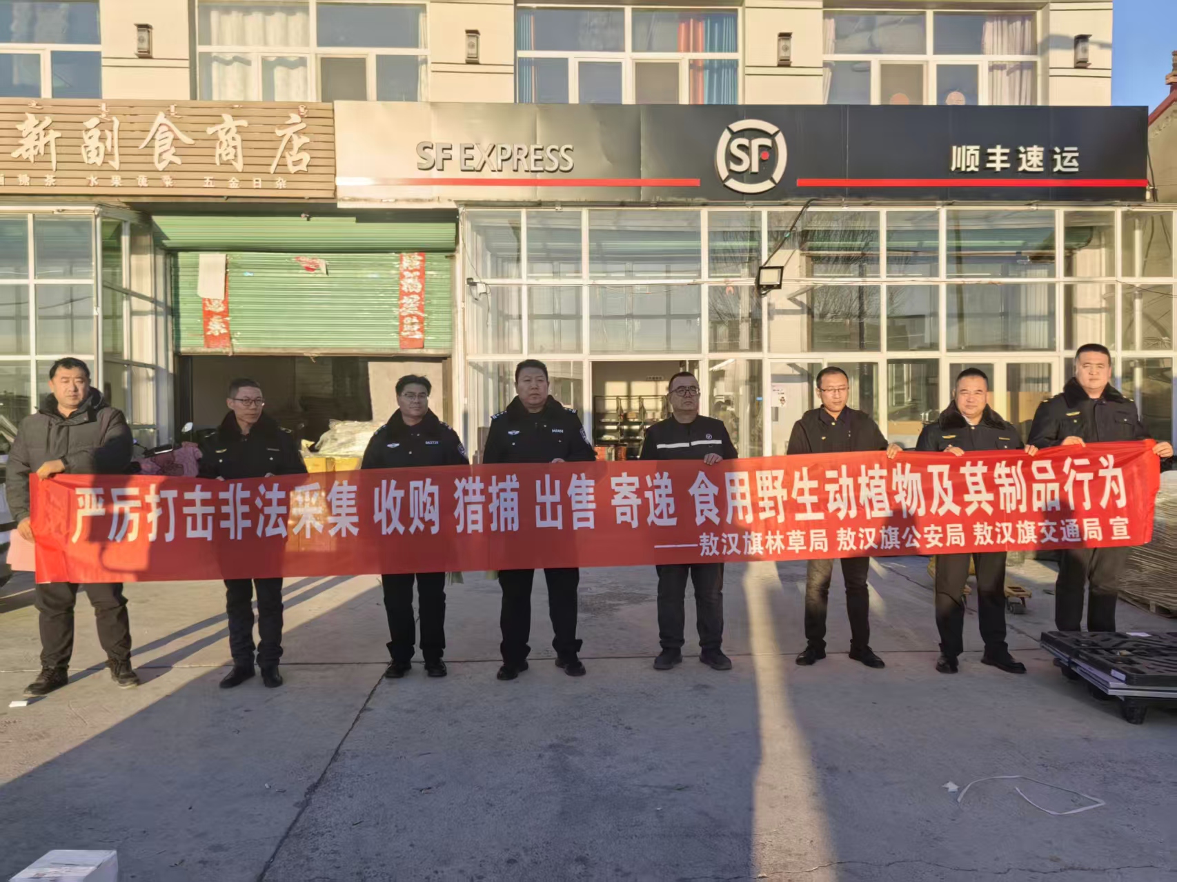 为深入贯彻落实“网盾行动”部署要求,严厉打击非法野生动植物违法犯罪行为,切实守护辖区生态安全与生物多样性,近日,敖汉旗交通运输局联合旗林草局、公安局、市场监督管理局、农牧业局开展“网盾行动2025”联合执法检查,以精准有力的举措筑牢野生动植物保护防线。