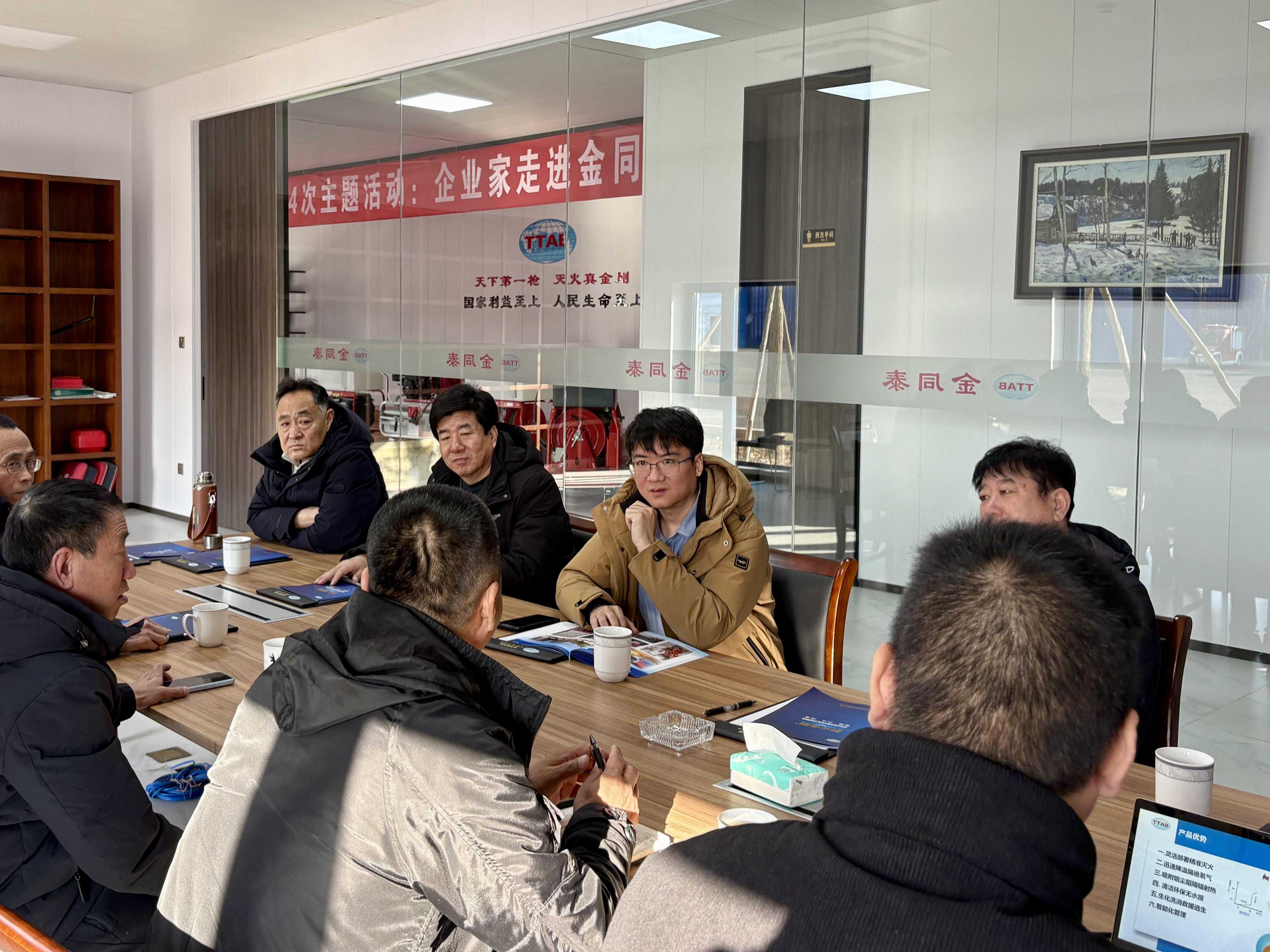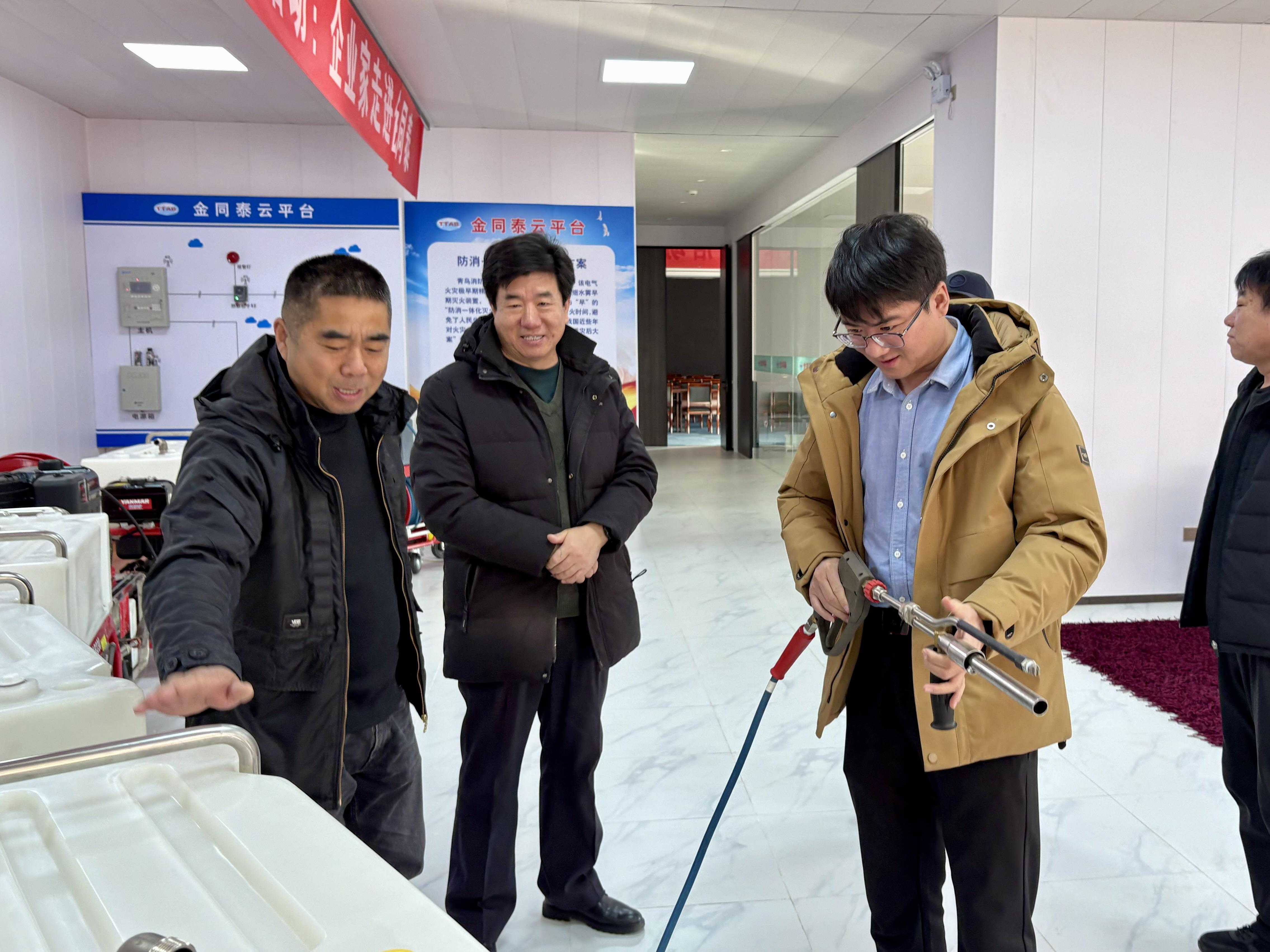 小分队一行实地走访了北京金同泰科技有限公司、北京安国服务有限公司等高新技术企业,通过现场参观、座谈交流,全方位了解企业生产运营、技术研发等情况,重点观摩水雾消防装备,听取企业关于专利技术、产品特点及竞争优势的介绍。