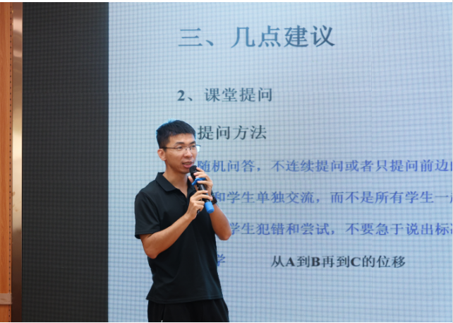 赵博文老师立足物理学科教学实践,结合多学科案例,以《如何通过量规培育学生的自我评估能力》为题开展专题分享,助力教师掌握引导学生自我评估的实用方法。结合自身公开课执教与教学设计比赛经验,他先后开展《对物理教学设计的一些思考》《如何完善教学设计》专题讲座,传递先进教学理念与实操技巧;同时,以自身成长经历为蓝本,带来《新教师如何快速成长》分享,用真实案例与心路历程激发当地教师的专业成长自觉。