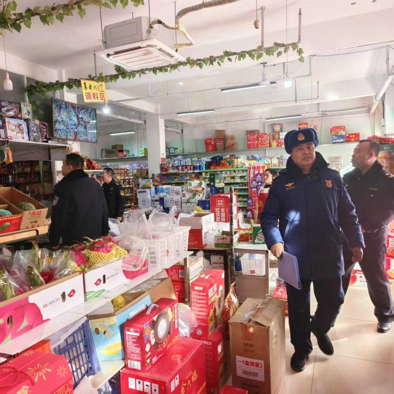 严管经营环节,规范销售行为。检查组对人员密集的超市、商场及烟花爆竹零售经营场所进行了拉网式排查。检查重点聚焦非法经营、超范围经营、违规燃放等行为。检查组重申并强调:超市、商场等非许可场所严禁销售任何烟花爆竹产品;同时,要求各烟花爆竹零售经营者必须时刻绷紧安全弦,严格落实“五个严禁”和“三个务必”等八项硬措施,对标对表执行烟花爆竹销售门店“十不准”要求,确保经营环节安全规范。