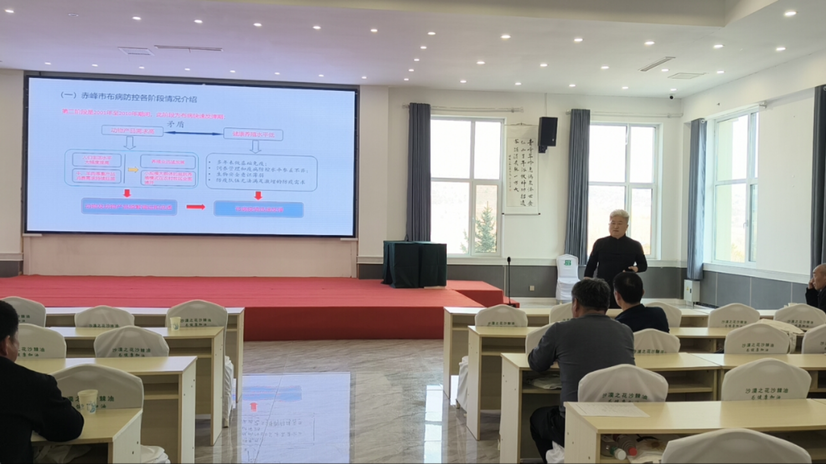 本次培训课程设置精准贴合基层防疫实际,邀请了多位行业专家和业务骨干授课,内容丰富、针对性强。赤峰市应用职业技术学院教授乌力吉(享受国务院特殊津贴)围绕赤峰地区牛羊常见疫病诊断与治疗进行了细致讲解,结合临床案例分享了实用诊疗技巧;赤峰市动物疫病预防控制中心科长刘勇(正高级兽医师),全面解读了全市布病疫情形势、防控策略及防疫队伍建设相关内容,为基层防疫工作指明了方向;敖汉旗动物疫病预防控制中心业务骨干娄黎明、张中鑫、任殿新等分别围绕动物免疫技术、兽药经营及使用知识、动物检疫技术及法律法规等内容开展培训,系统梳理了基层防疫工作的核心流程与操作规范。