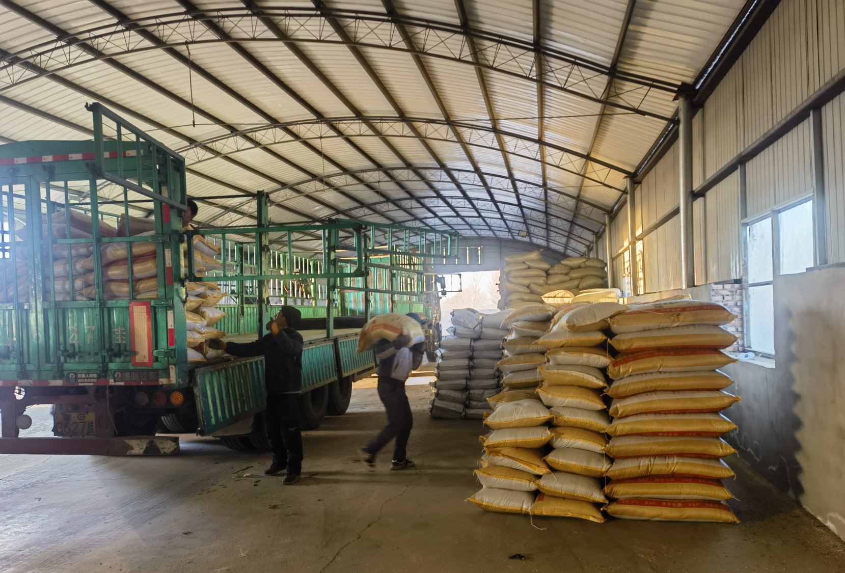 “三位一体”合作社正在卸统购统销物资。(摄影:朱占才)