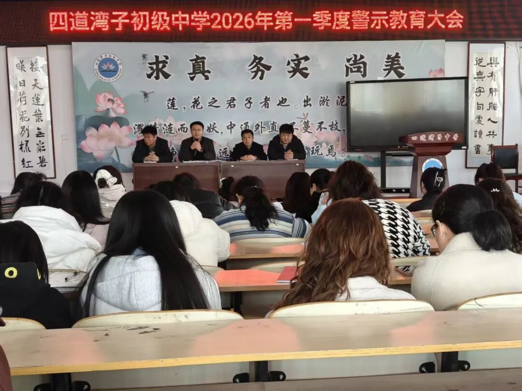 3月18日,四道湾子初级中学召开全体教师大会,系统部署新学期重点工作。会议通过警示教育、师德师风建设专题会议,强化纪律规矩意识;专题推进教辅征订等问题整治,深化作风建设;同时聚焦小班化教学与质量提升,并对校园安全工作进行再部署,为新学期工作有序开展奠定坚实基础。