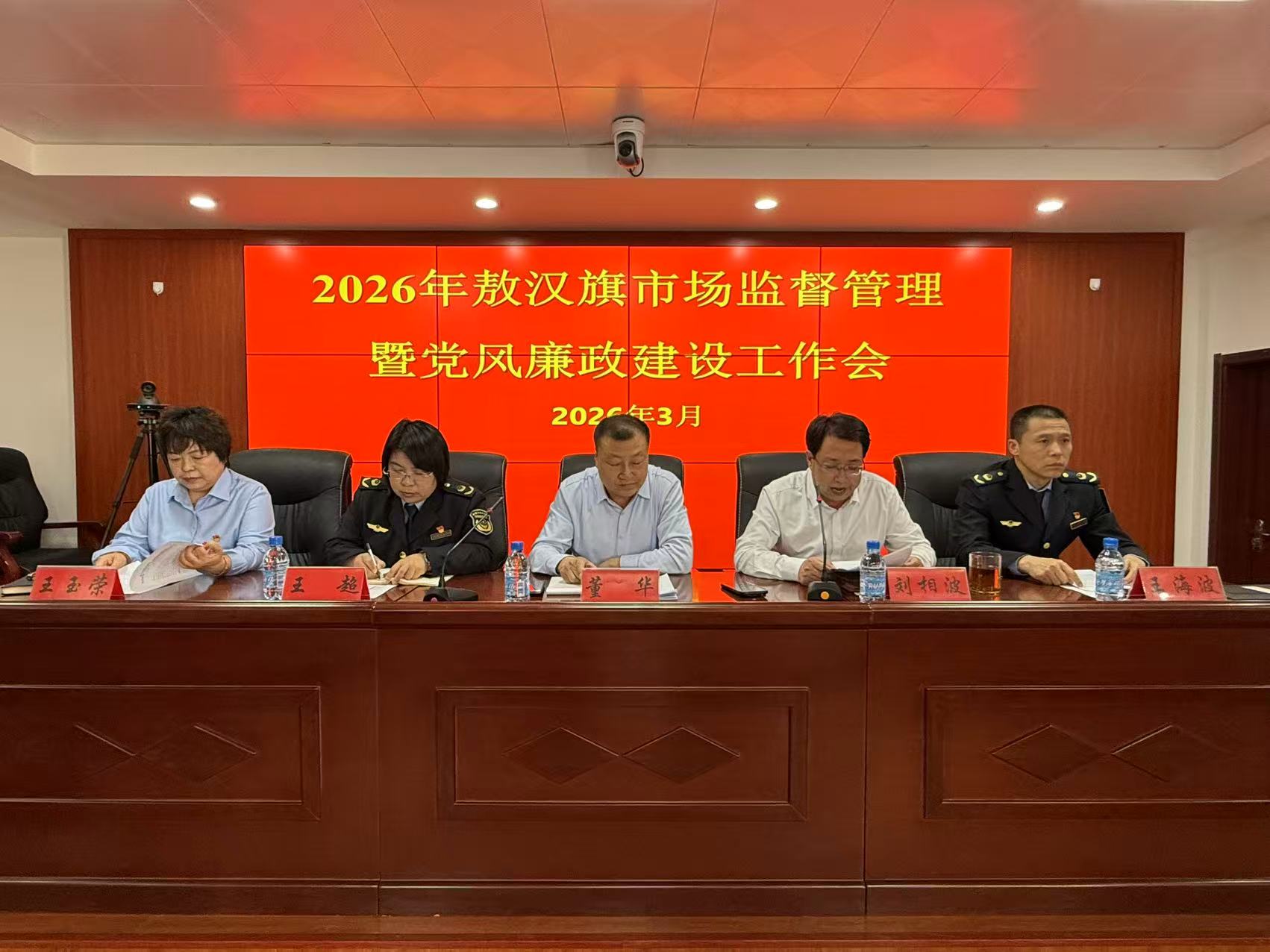 3月30日,敖汉旗市场监督管理局召开了2026年全旗市场监管暨党风廉政建设工作会议。会议深入贯彻落实党的二十大和二十届历次全会精神、习近平总书记对内蒙古重要讲话重要指示精神以及关于市场监管工作的重要论述,全面对标上级市场监管工作会议和旗委、旗政府各项工作部署,系统总结2025年及“十四五”时期工作,精准部署2026年重点任务,全力推动“十五五”市场监管事业开好局、起好步。敖汉旗市场监管局班子成员、全系统干部职工参加会议,会议传达学习了上级市场监管工作会议精神和旗委、旗政府安排部署,局党组与各股室队所签订了党风廉政建设责任书。局党组书记、局长董华出席会议并讲话。