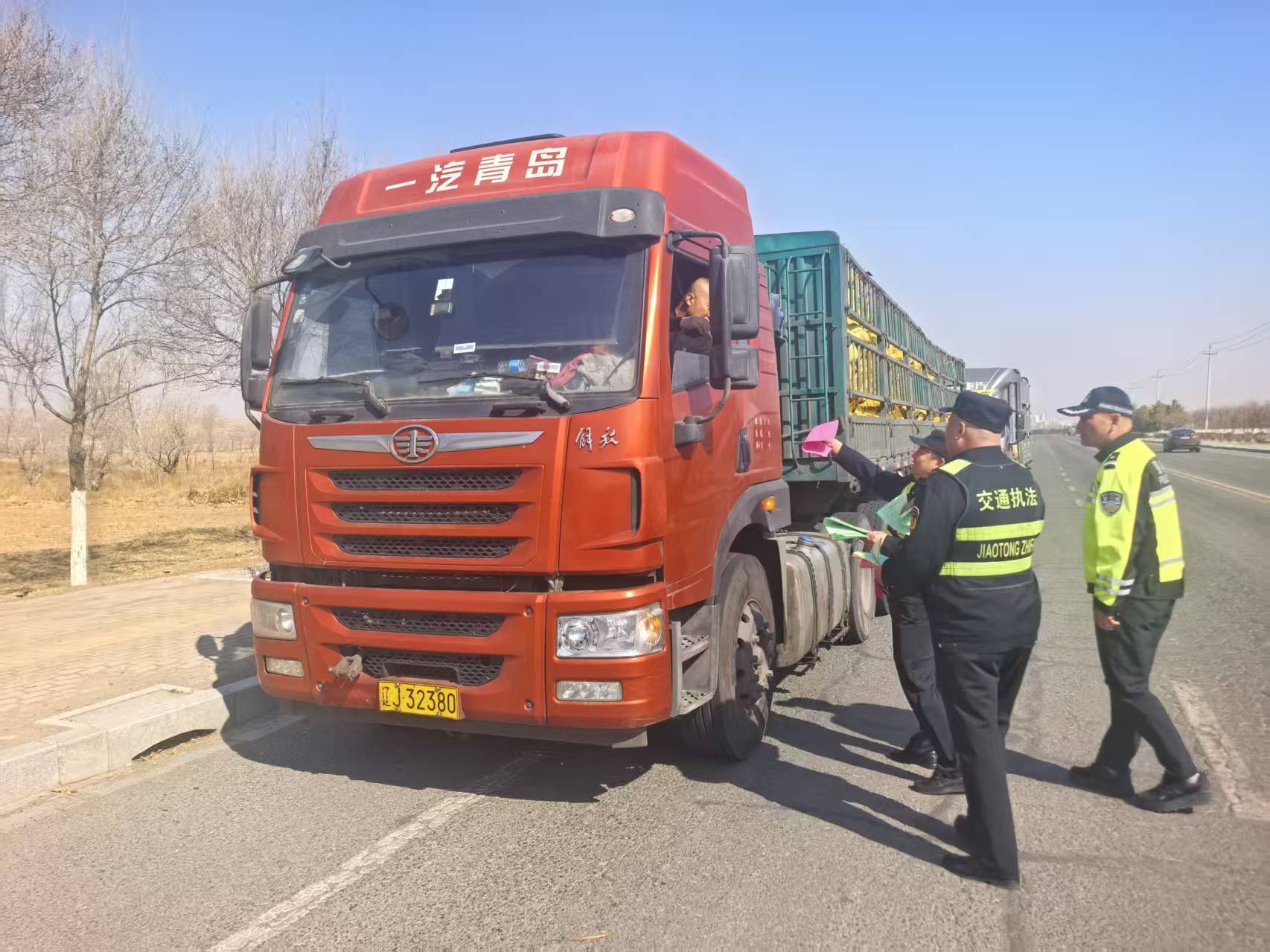 此次整治行动以消除公路安全隐患为核心目标,各部门密切配合、协同发力,紧盯国省干线公路控制区范围内的公路用地、建筑控制区等重点区域,常态化开展执法检查,依法严厉查处货车超限超载、货物抛洒滴漏等突出交通违法行为,全力提升公路整体通行品质。工作中,执法人员深入推行“说理式执法”,坚持宣传引导与集中整治相结合,通过散发宣传资料、开展法规宣讲、耐心说服教育等多种方式,向过往货车司机和沿线群众宣传解读安全运输相关法律法规和安全知识,进一步增强群众和运输从业者的道路安全意识,从源头遏制各类违法违规行为发生。