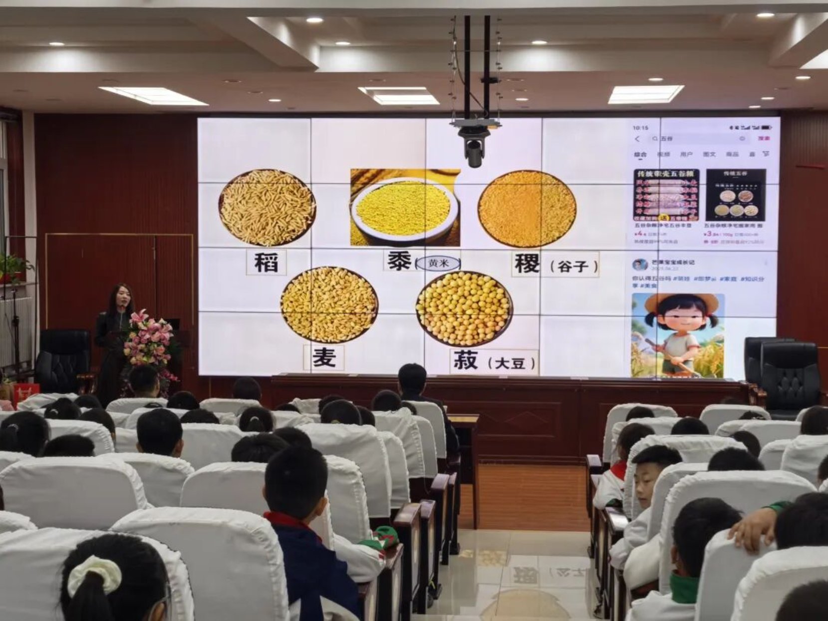 三位家长或以《珍惜粮食 致敬耕耘》为主题,带领学生走进八千年敖汉小米的神奇世界,生动讲述了敖汉“全球环境500佳”“全球重要农业文化遗产”“世界小米之乡”三张世界级名片的故事以及从远古碳化粟到现代全产业链;或讲述《节气与农耕文化——敖汉小米的故事》,将节气、农耕与中医智慧巧妙融合,用朗朗上口的节气歌解读自然规律,揭示古人顺应天时的科学智慧;或用朴实温暖的语言讲述《一张餐桌背后的农民劳动》,描绘一粒米从浇地、播种到收割、碾米的完整旅程。