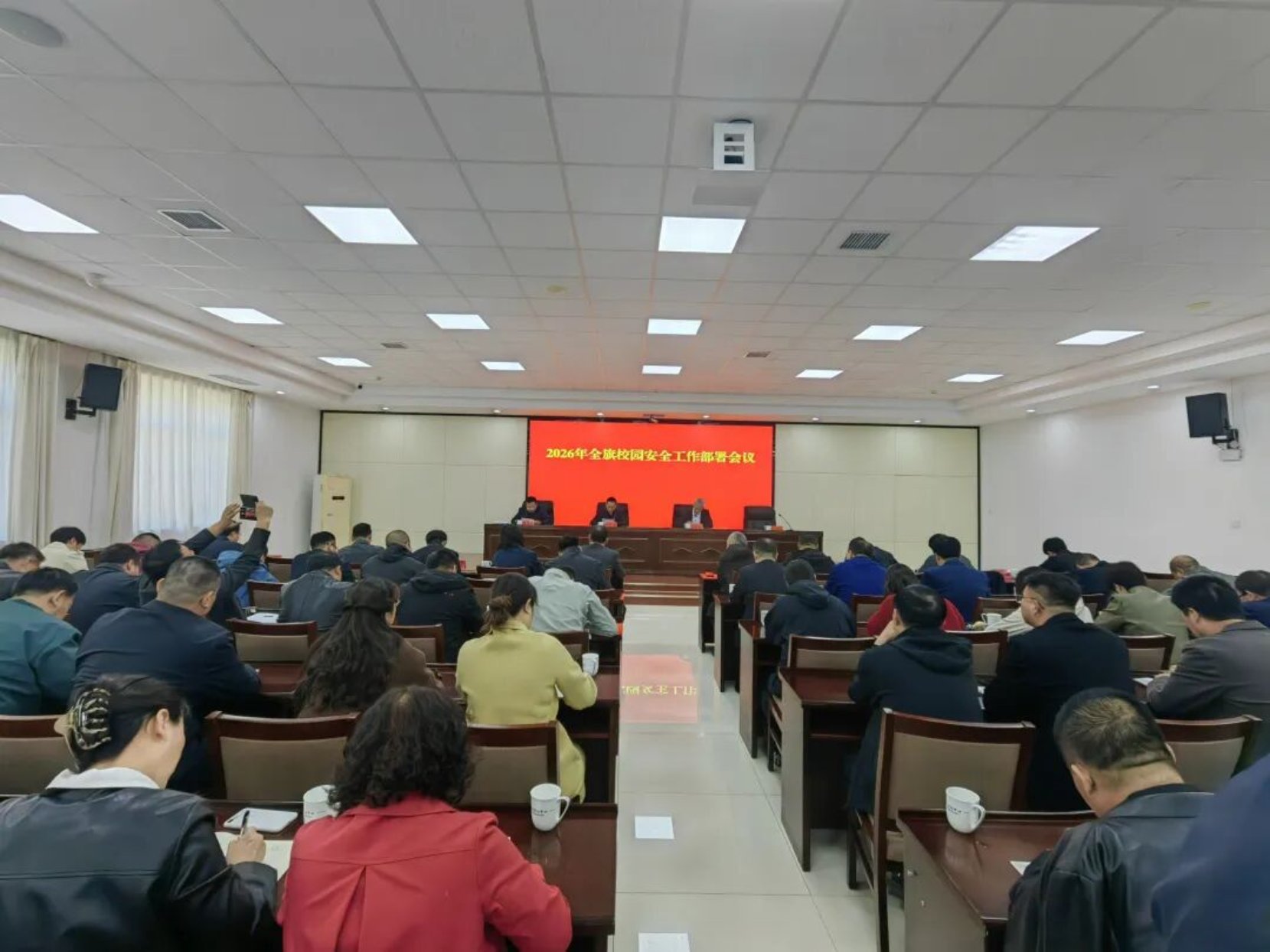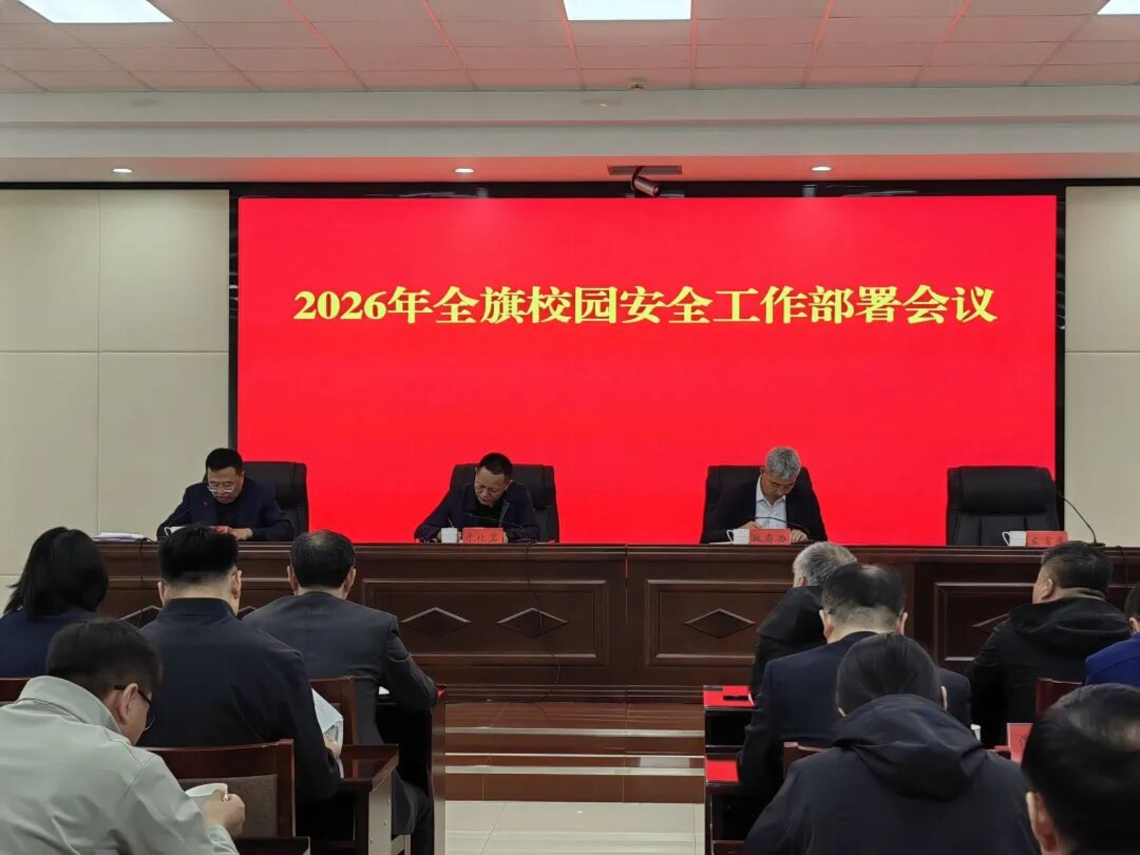 会上,教育局主要负责人通报2025年全旗校园安全工作总体情况,并对2026年校园安全工作进行具体部署。旗公安局、水利局、文化旅游体育局、市场监督管理局、城管局、人民法院、消防大队等单位结合各自职责,就做好校园安全相关工作进行了发言。