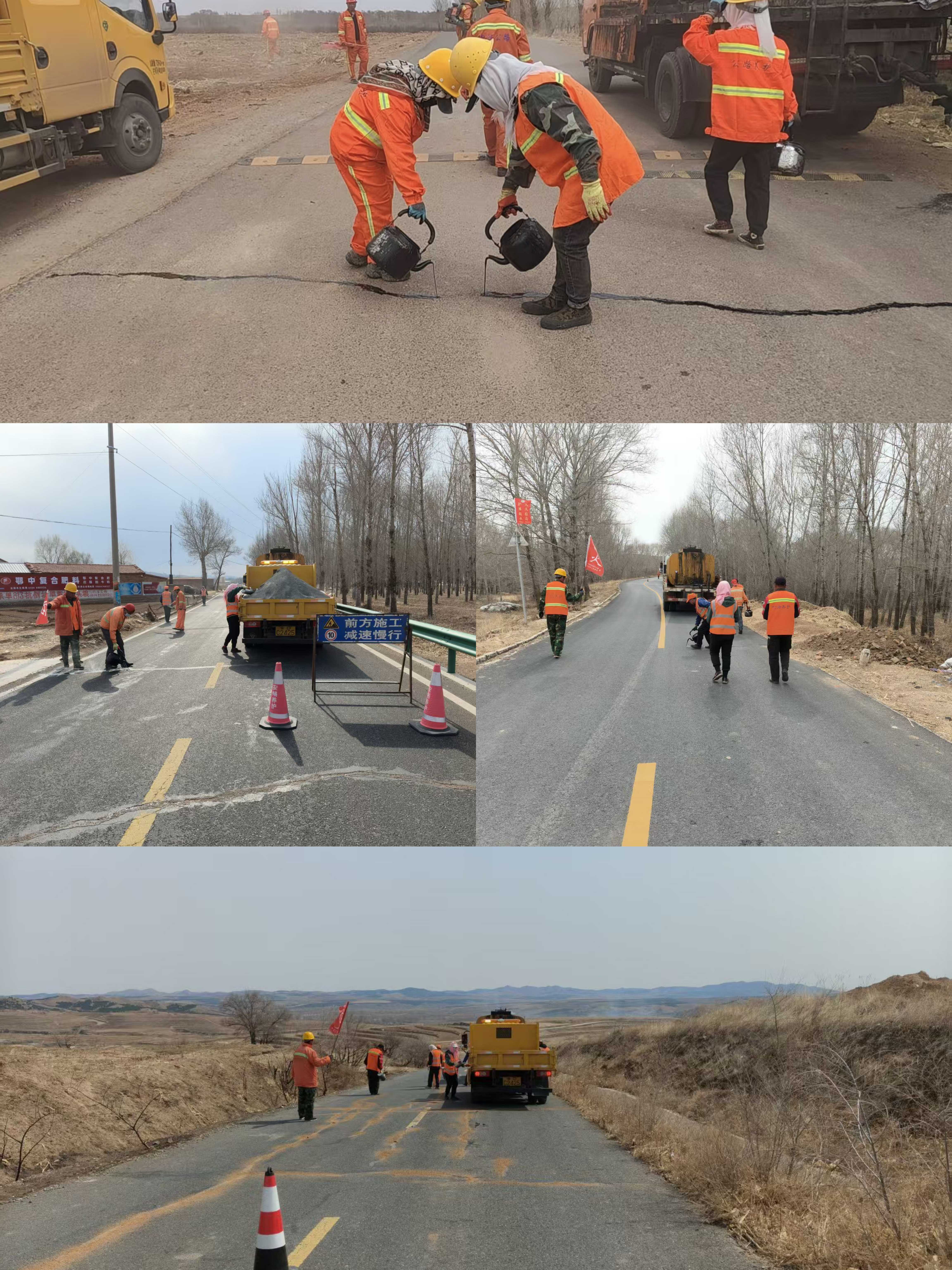旗公路管护和运输保障中心抢抓春季公路养护黄金期,组织专业养护队伍对辖区内农村公路全面开展路面灌缝养护作业,为群众铺就安全畅通的出行之路。