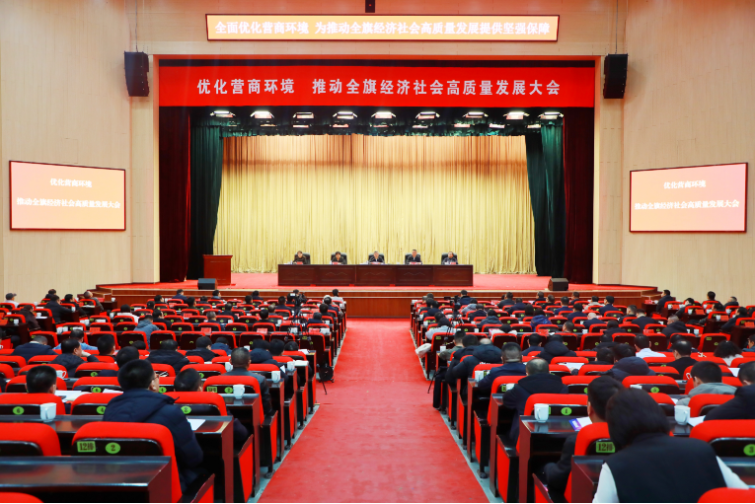 2月28日,优化营商环境,推动全旗经济社会高质量发展大会召开。会议深入贯彻习近平总书记对内蒙古系列重要讲话重要指示精神,全面落实自治区党委“1571”工作部署和区市高质量发展大会精神,以营商环境之“优”,促高质量发展之“进”。旗委书记孙广通出席会议并讲话,旗委副书记、旗政府旗长马立华主持会议,旗人大常委会主任叶秀丽、旗政协主席国华等旗级领导出席会议。
