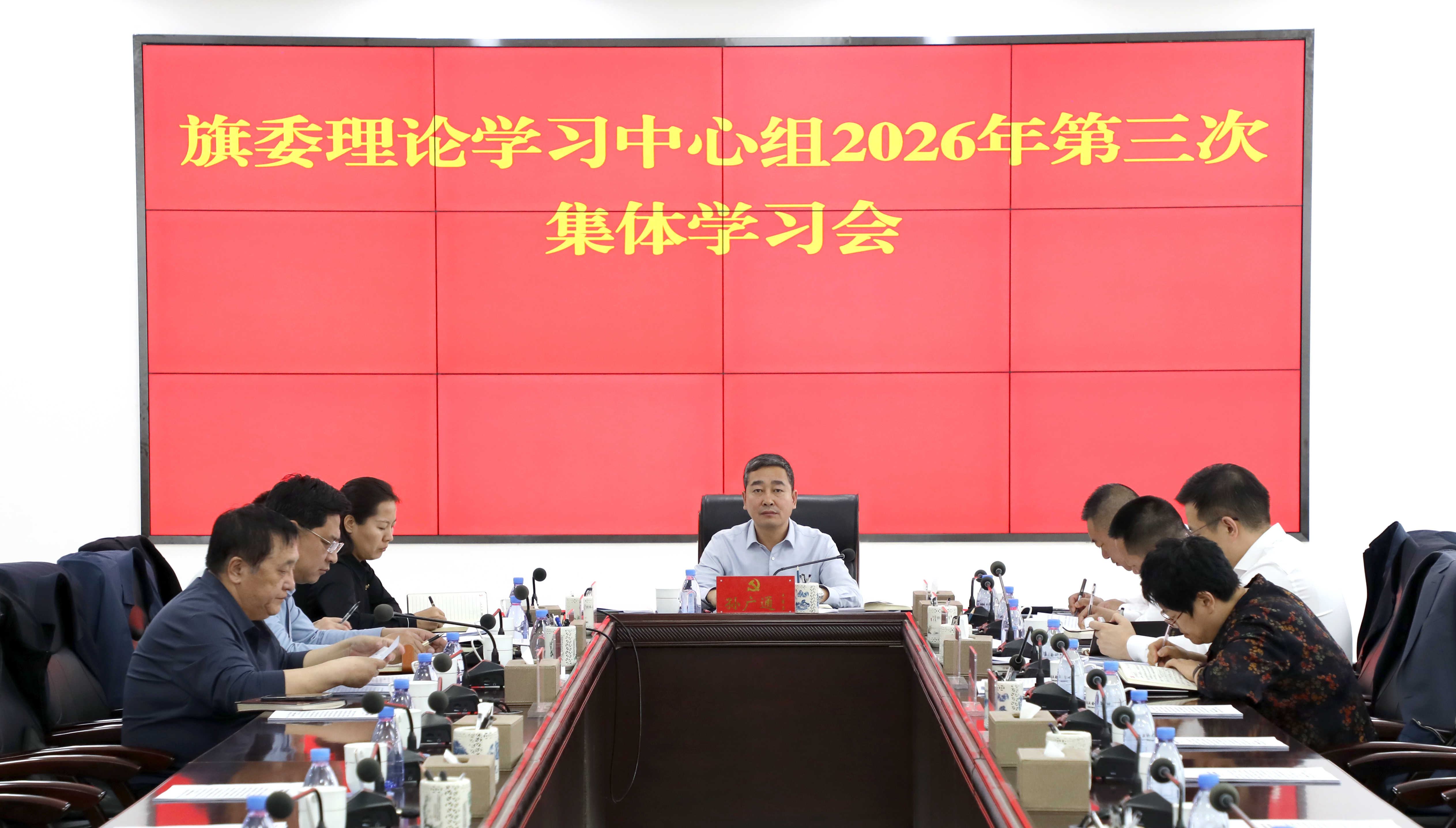 3月27日,旗委书记孙广通主持召开旗委理论学习中心组2026年第三次集体学习会,传达学习了习近平总书记关于全面依法治国的重要论述,全国两会精神和自治区两会精神;与会同志围绕“全面依法治旗”主题,进行了研讨交流。