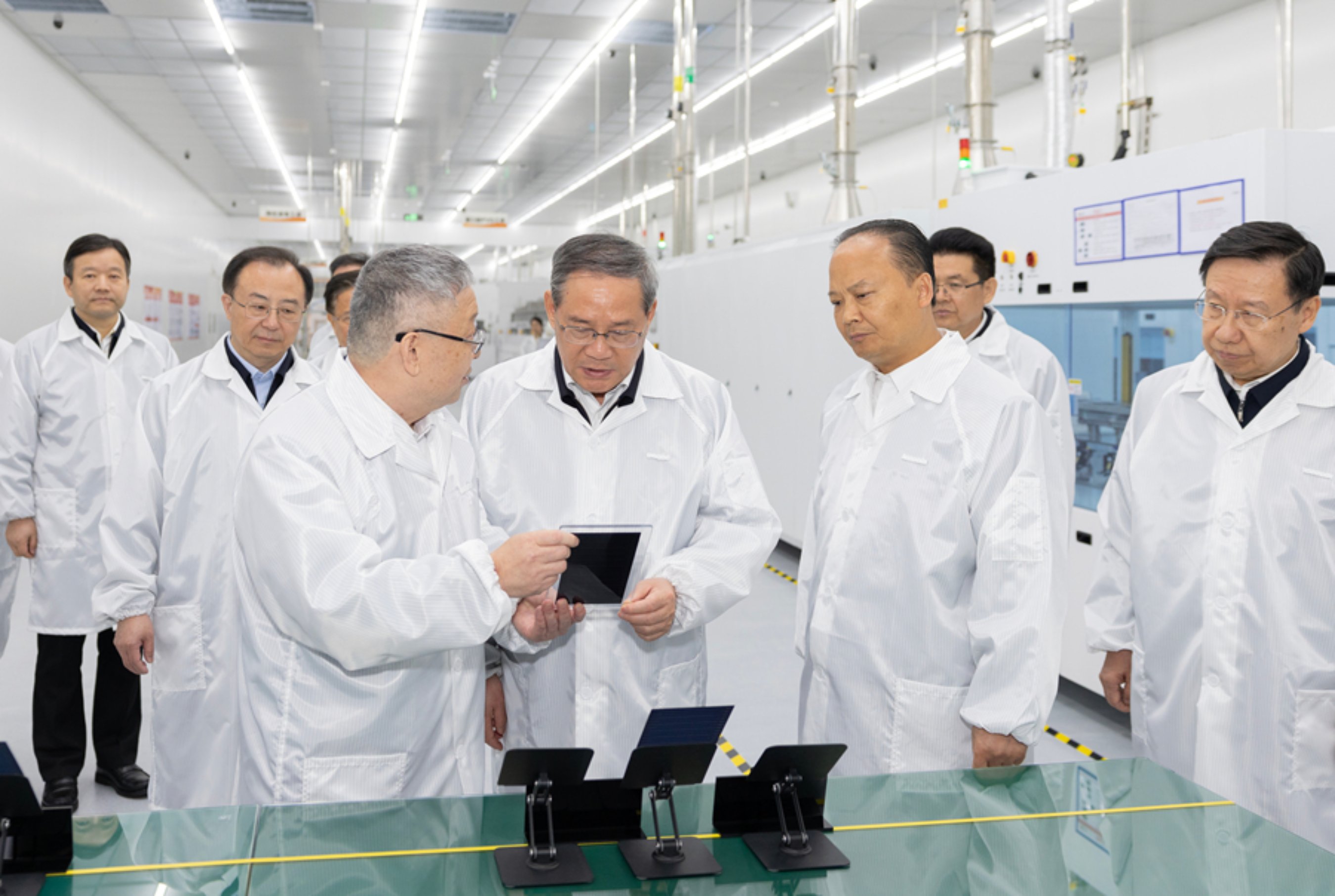 3月30日至4月1日,中共中央政治局常委、国务院总理李强在四川调研。这是3月30日,李强在通威全球创新研发中心听取光伏技术攻关介绍,进入车间察看电池组件研制情况。