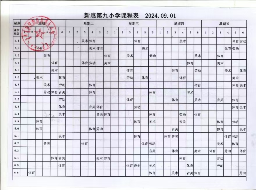 四家子中心小学2024秋季艺术、体育、课程表劳动.rar