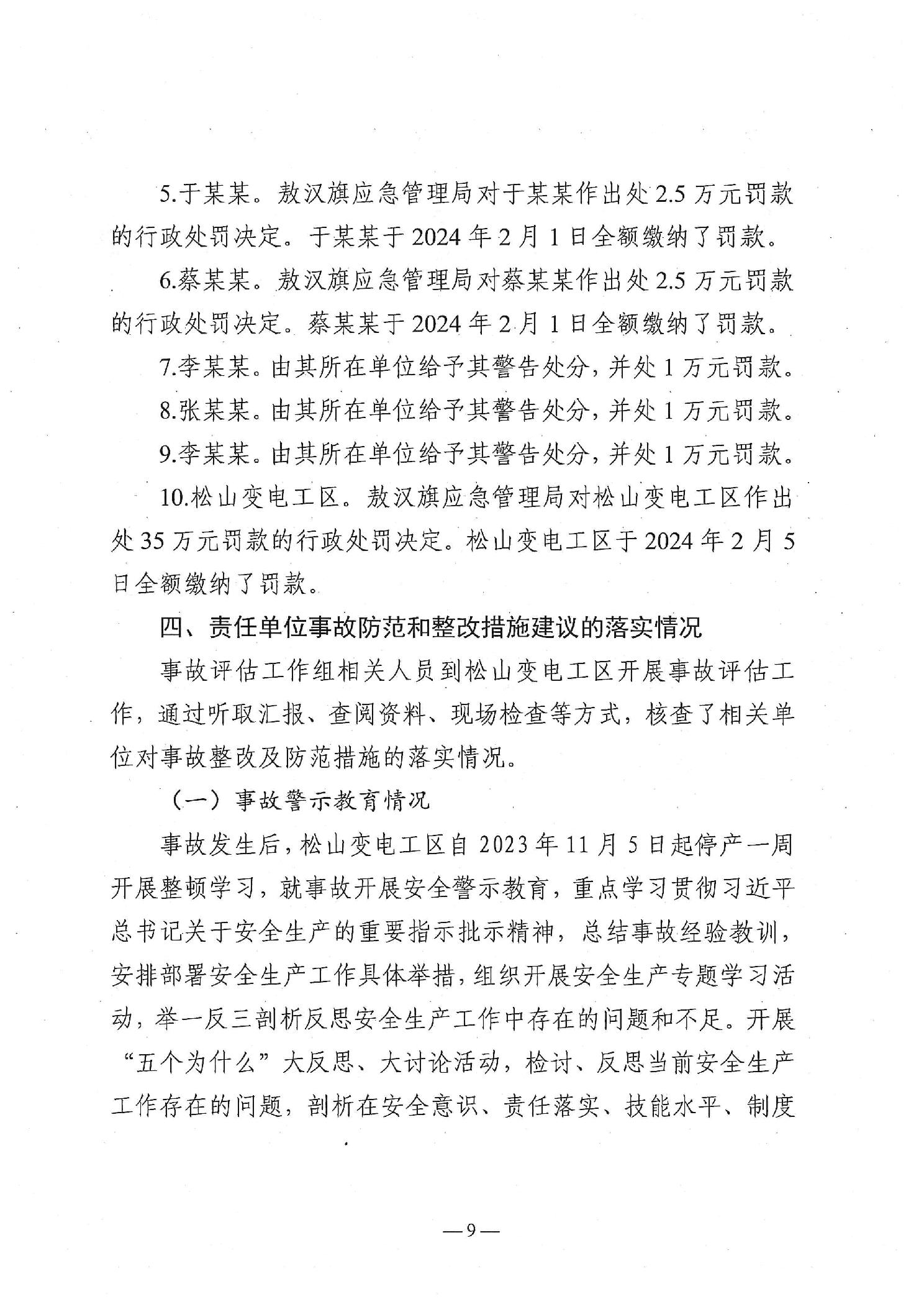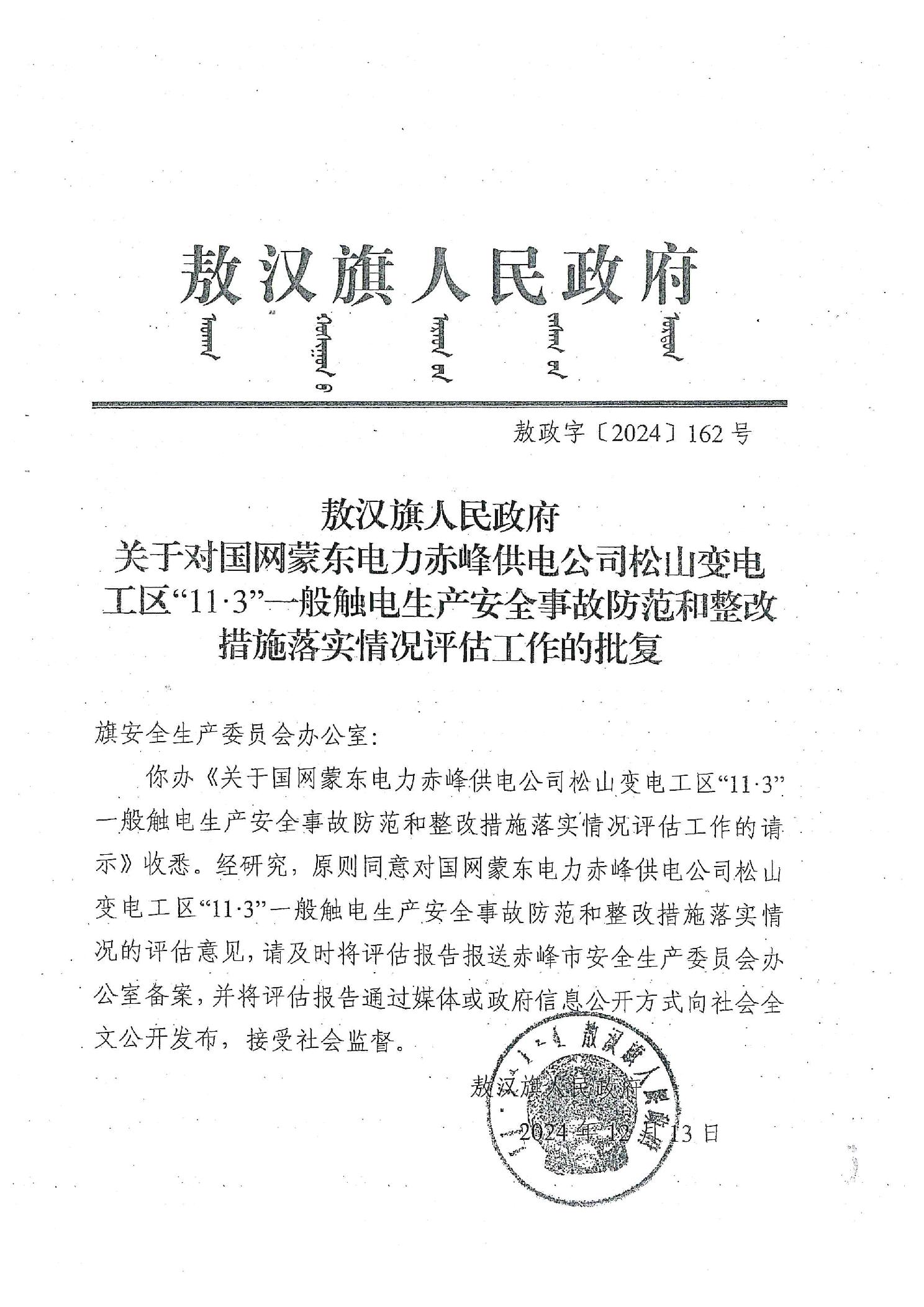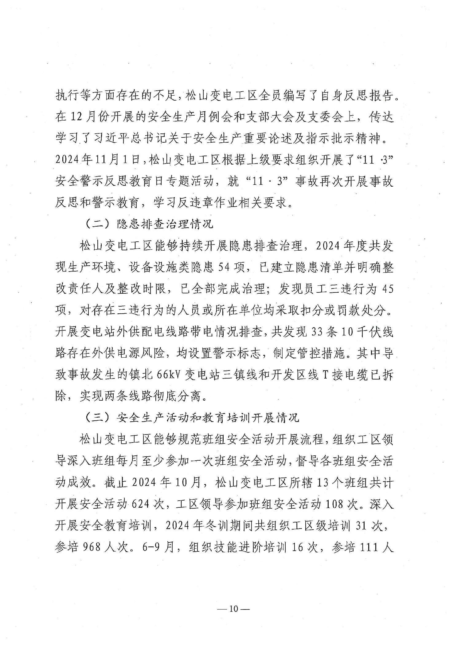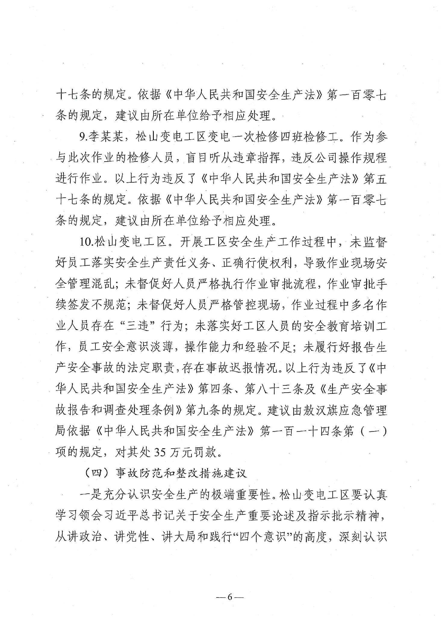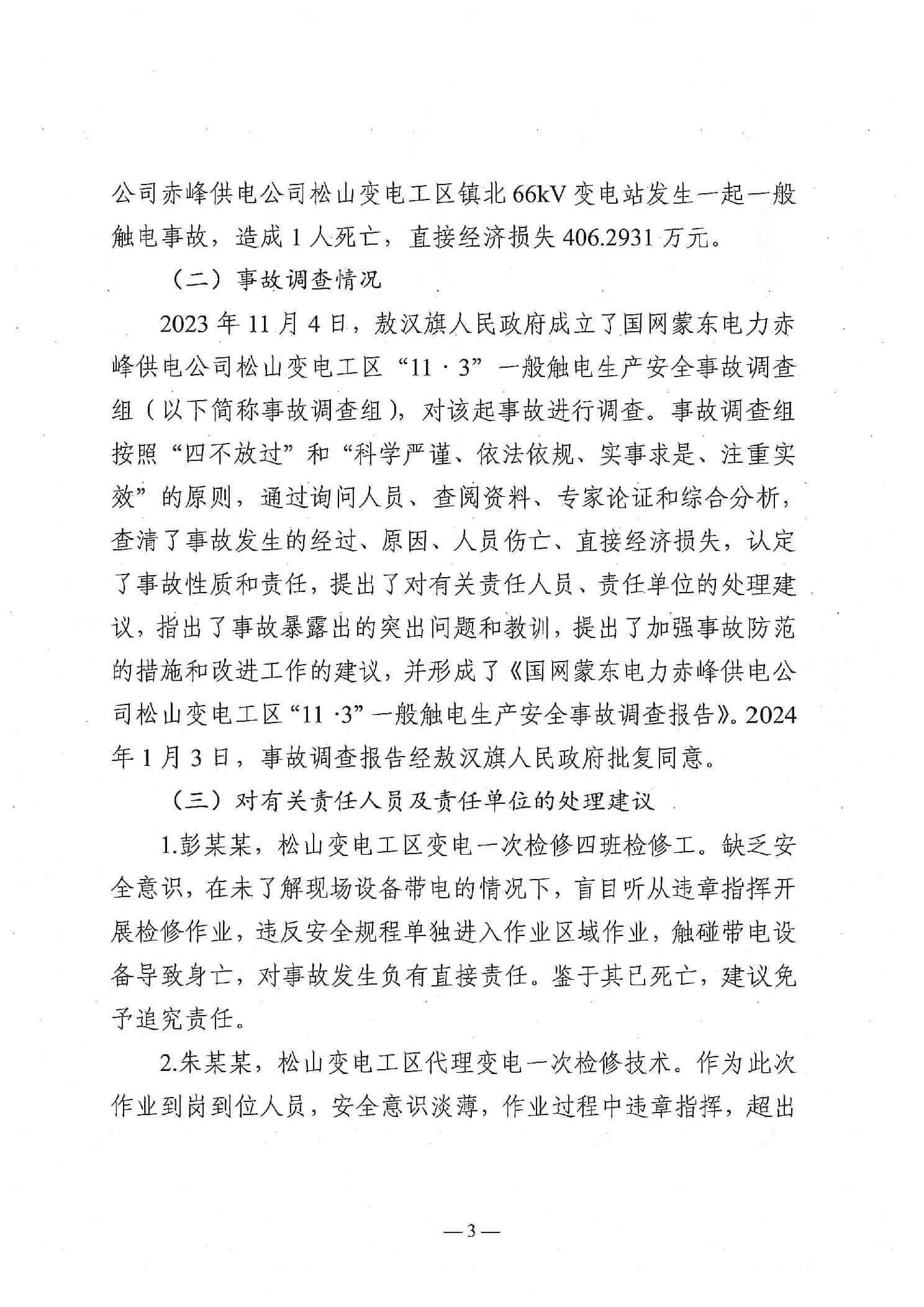 国网蒙东电力赤峰供电公司松山变电工区“11·3”一般触电生产安全事故防范和整改措施落实情况评估报告