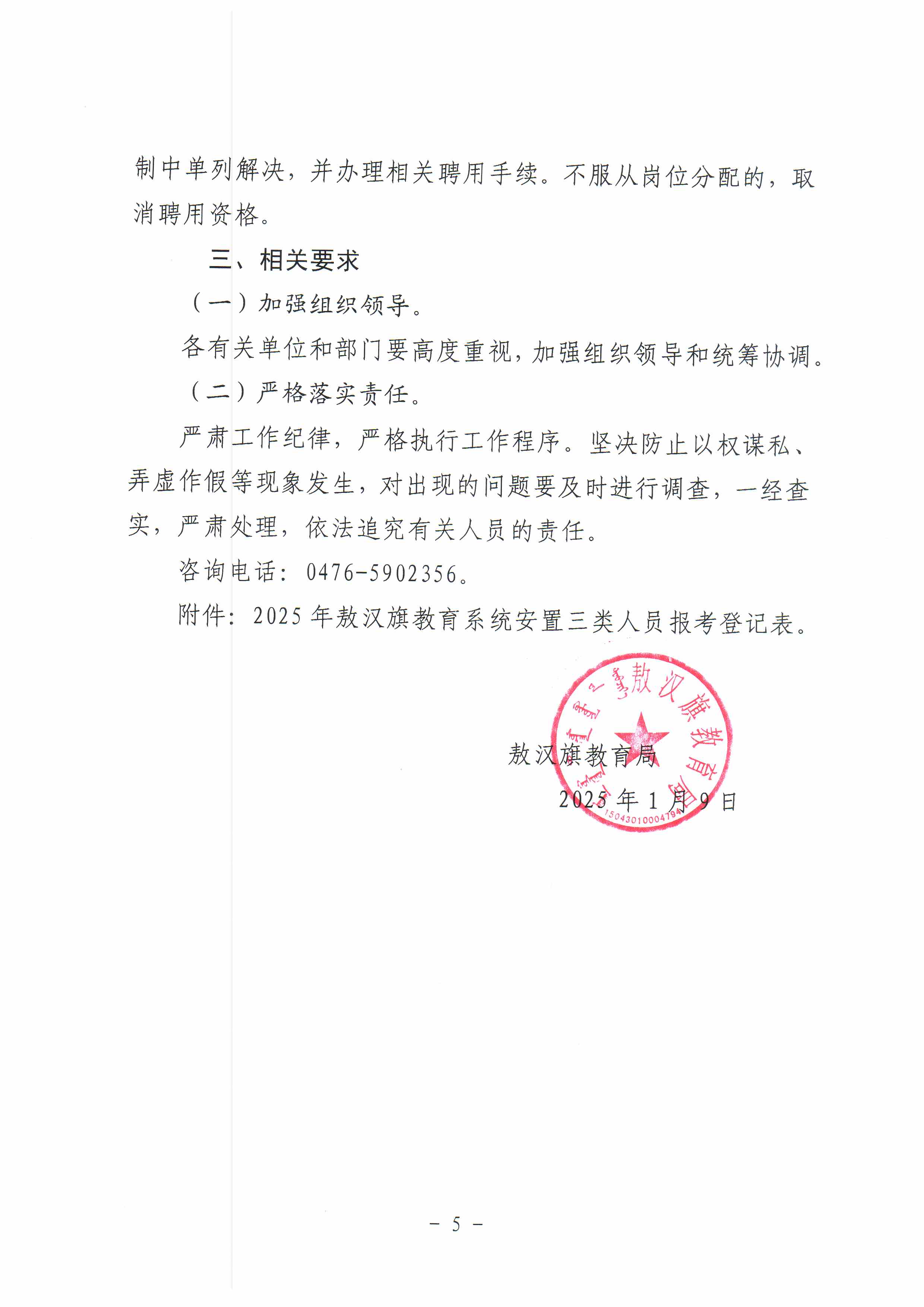2025年敖汉旗教育系统通过考试安置三类人员的公告