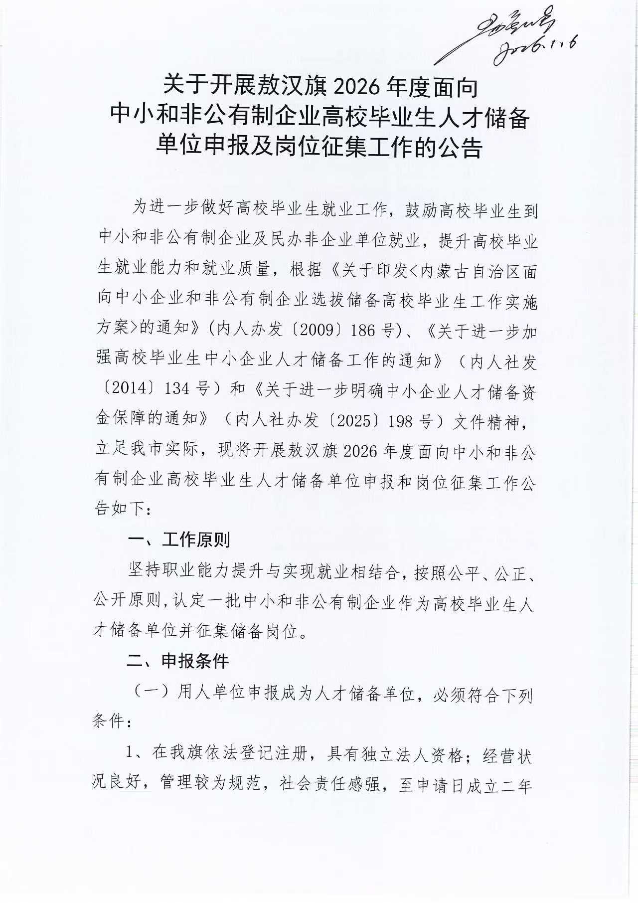 关于开展敖汉旗2026年度面向中小和非公有制企业高校毕业生人才储备单位申报及岗位征集工作的公告