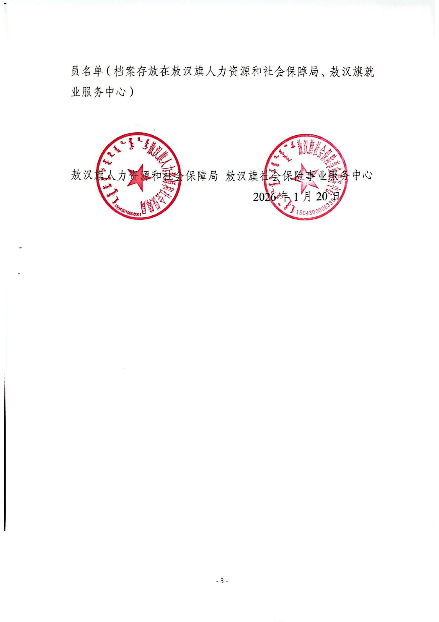 敖汉旗2026年企业养老保险达到法定退休年龄人员名单(档案存放在敖汉旗人力资源和社会保障局及敖汉旗就业服务中心)(2026.1.20).et