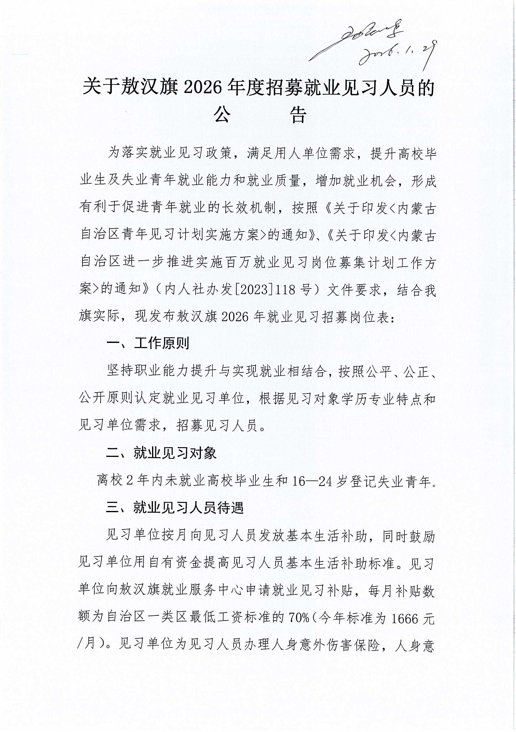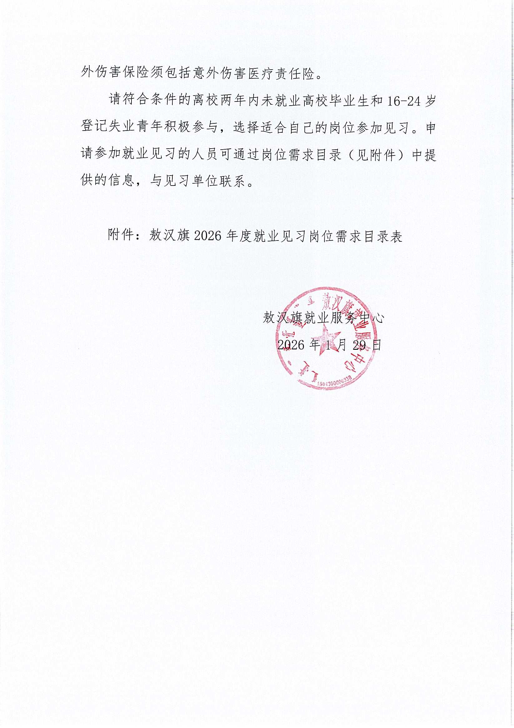 敖汉旗2026年就业见习岗位需求目录表.xlsx
