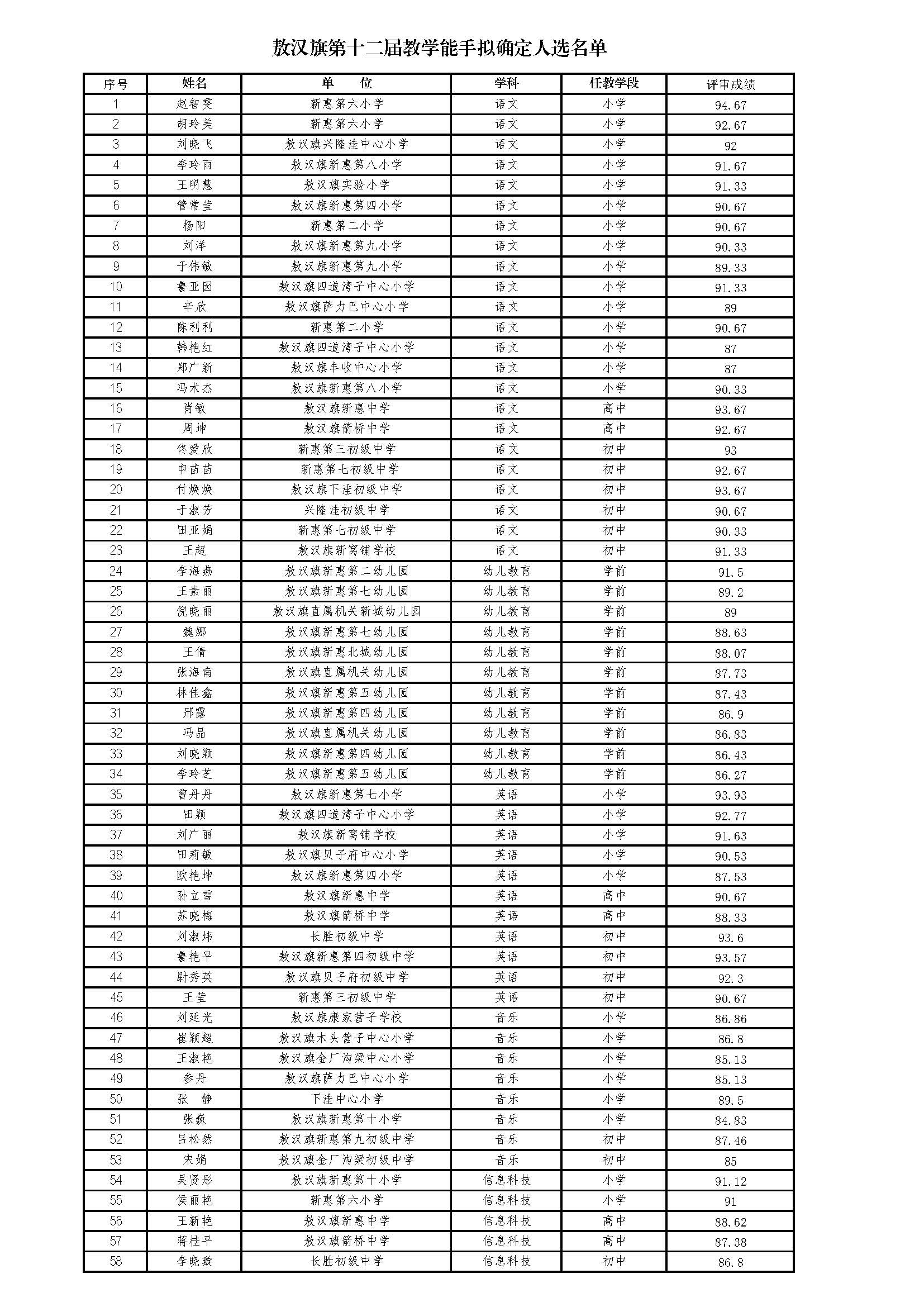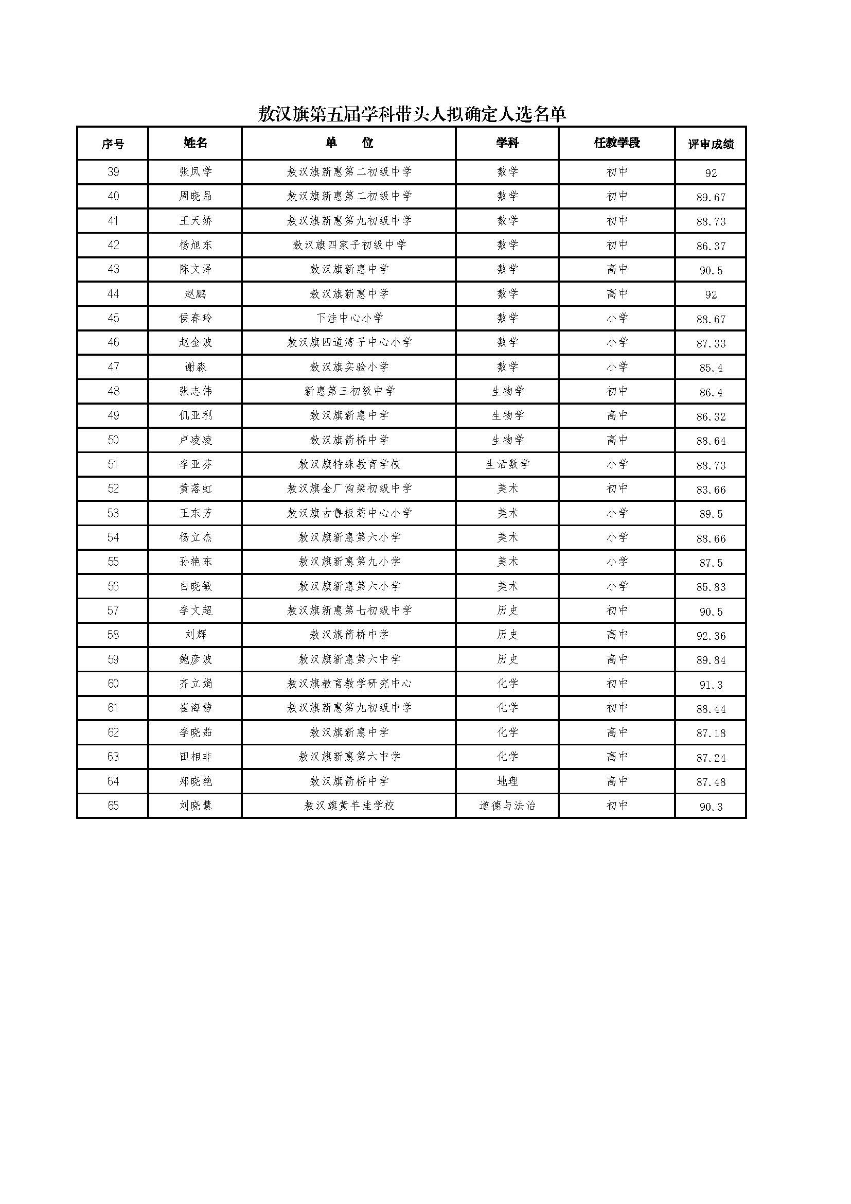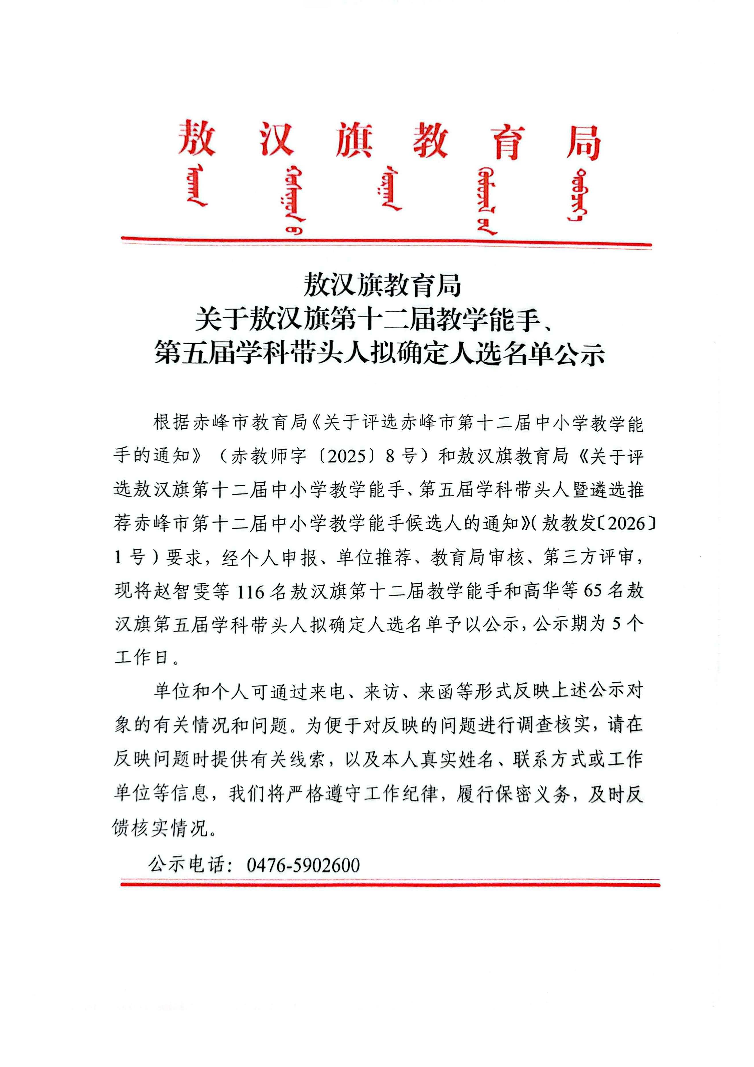 敖汉旗教育局关于敖汉旗第十二届教学能手、第五届学科带头人拟确定人选名单公示