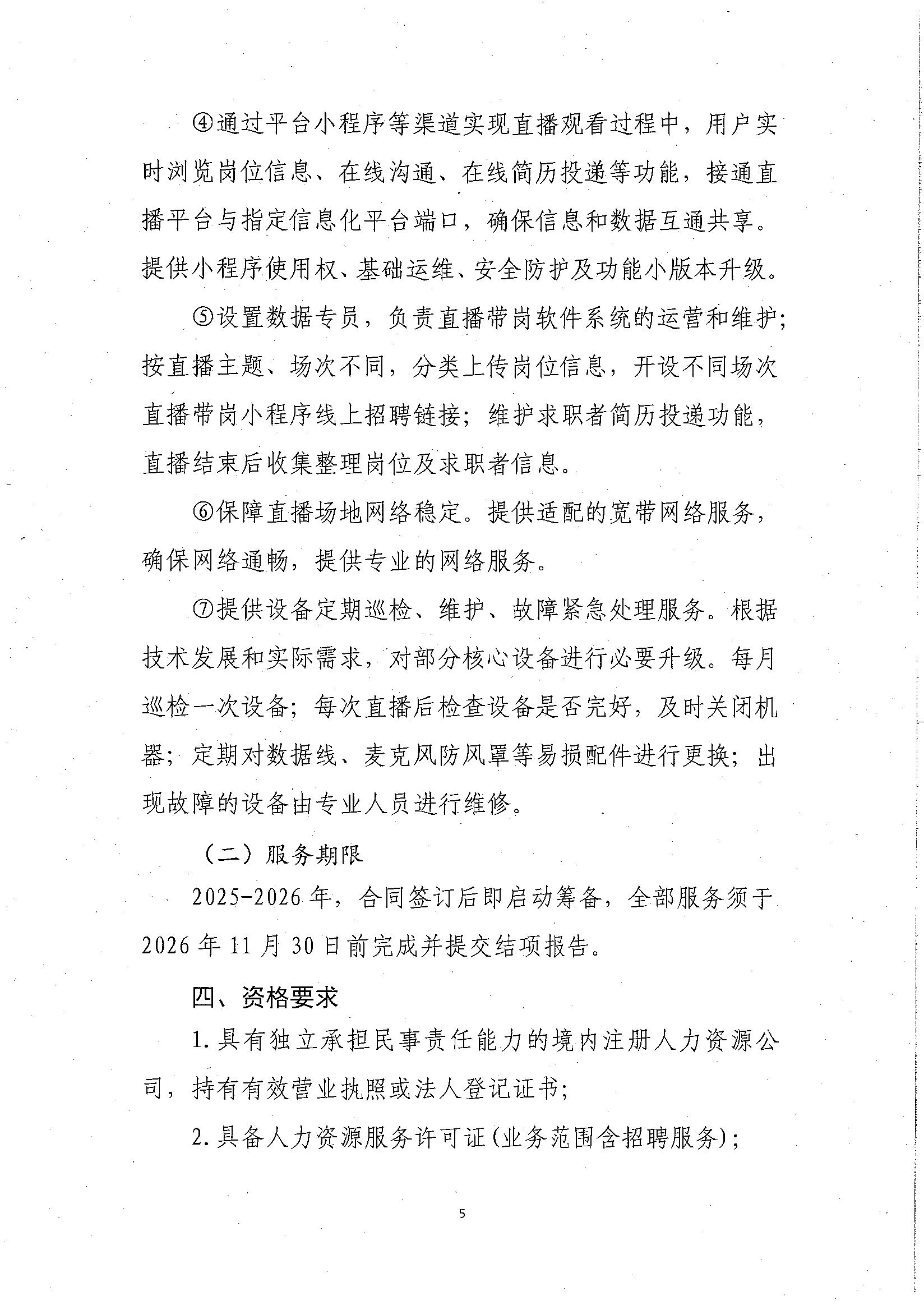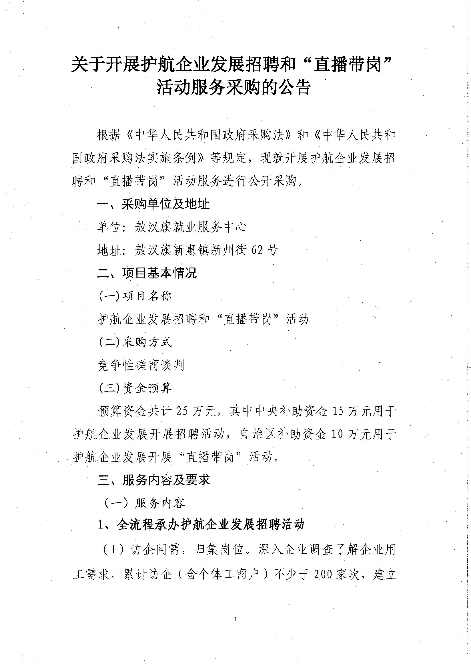 关于开展护航企业发展招聘和“直播带岗”活动服务采购的公告