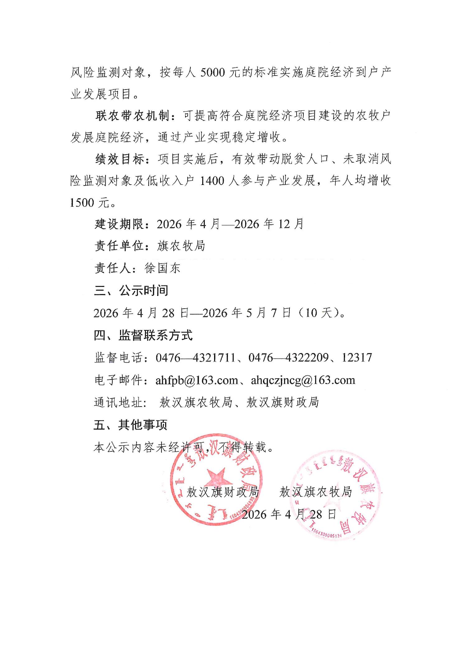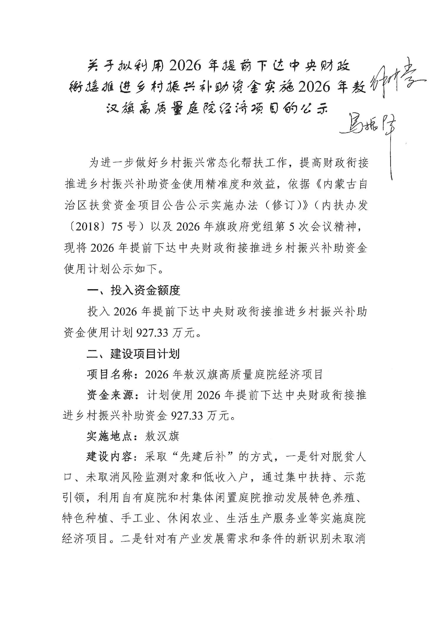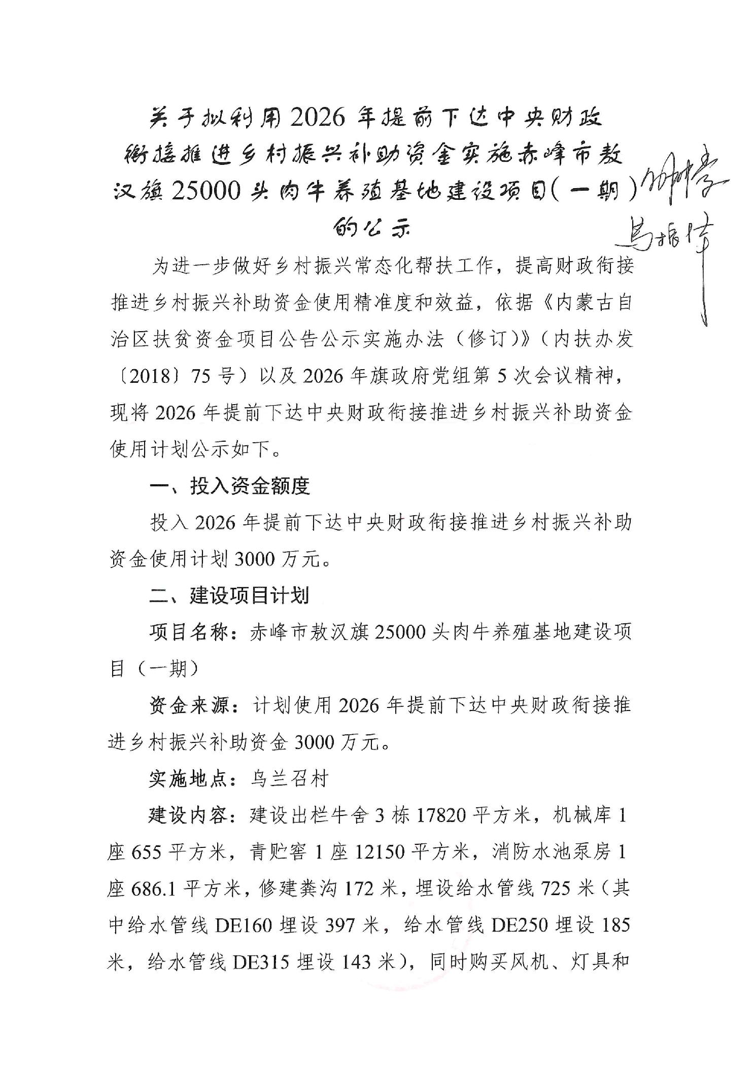 关于利用2026年提前下达中央财政衔接推进乡村振兴补助资金实施项目公示