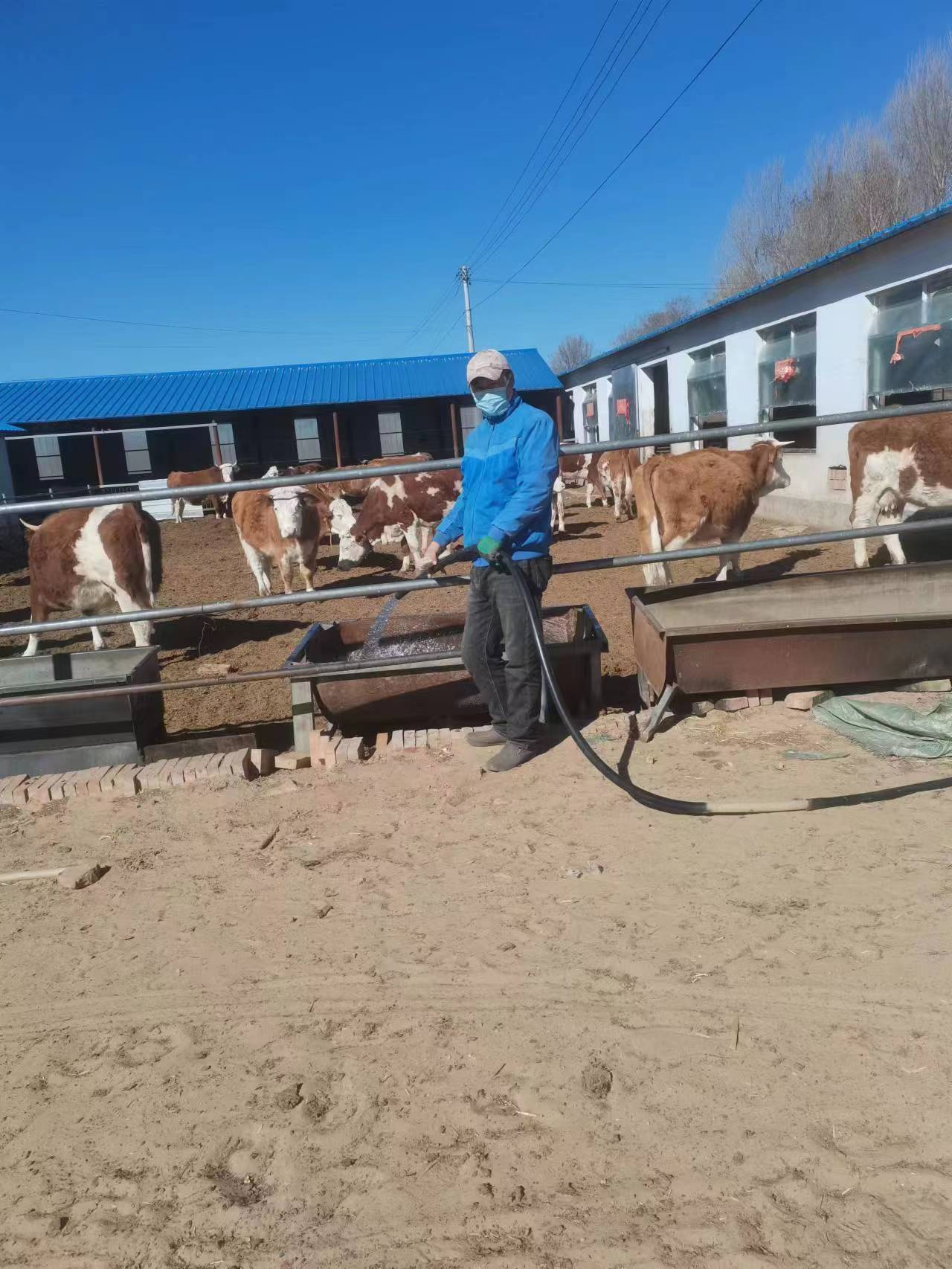 图:周国辉正在给牛槽加水