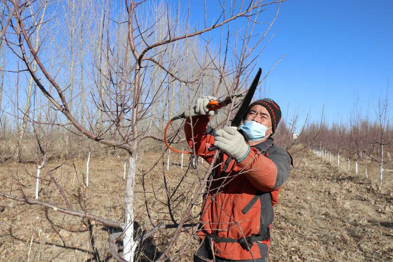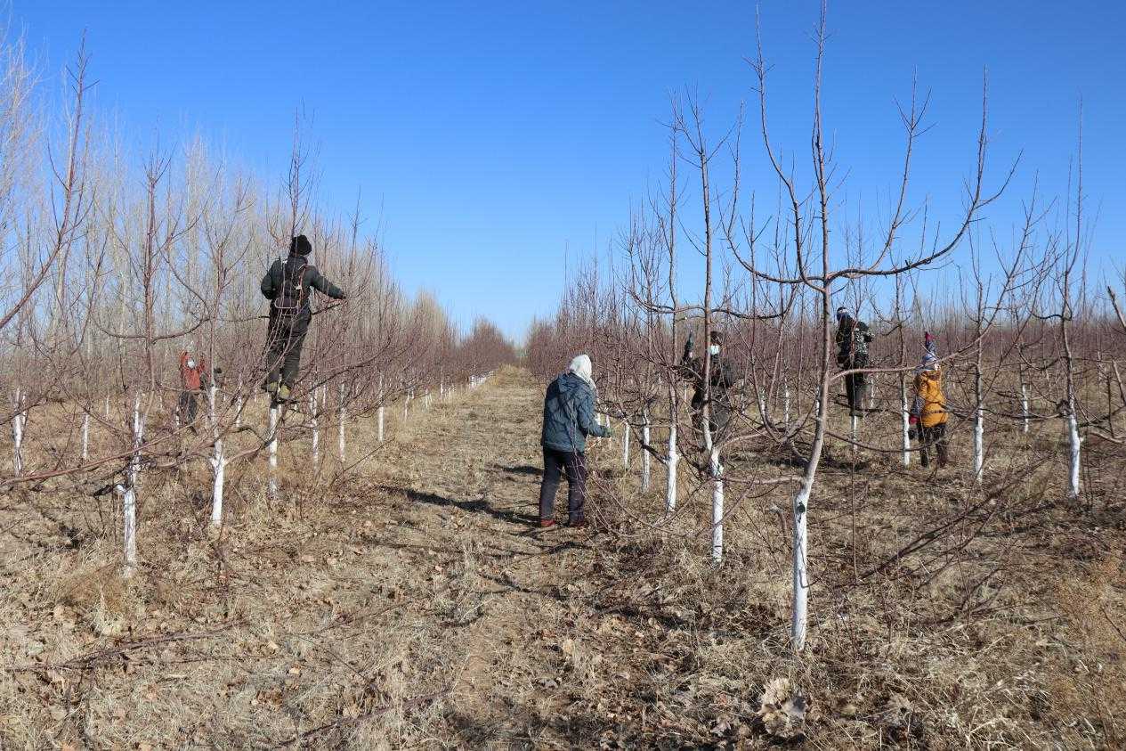 (农场工人进行果树修剪和春季管护 摄影:王凤虎)