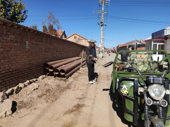 孤山子村公益岗曹瑞成正在清扫街道垃圾。(摄影:曹玉冬)