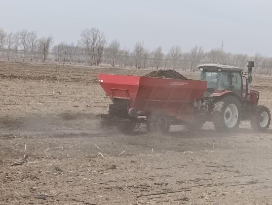 机器散播农家肥。(供图:姜亚利)