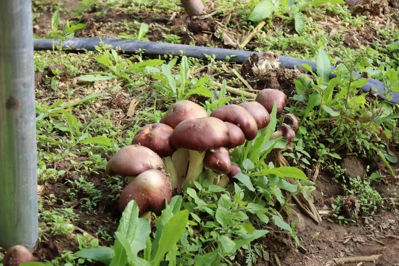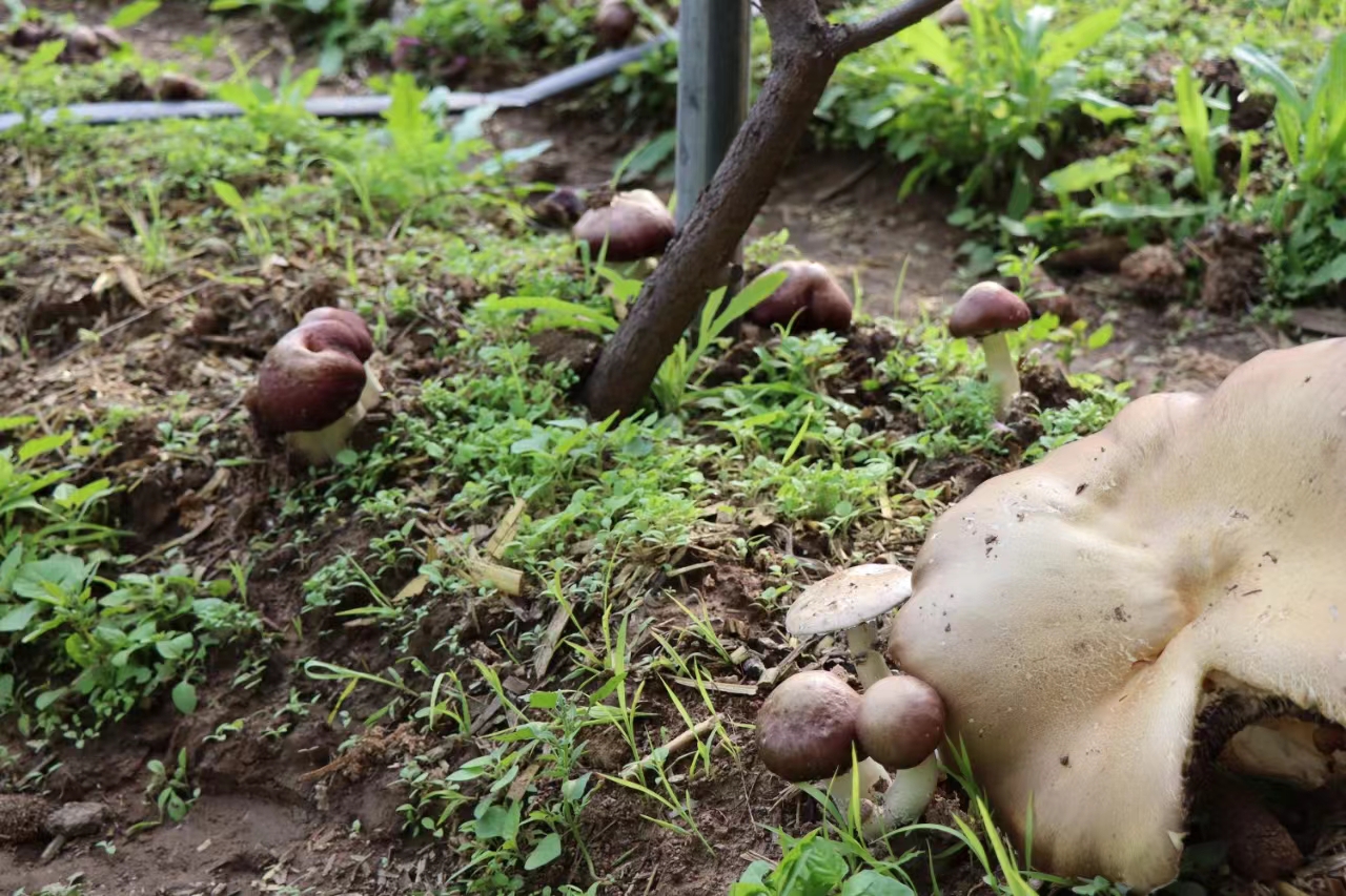 赤松茸又名大球盖菇,具有生长周期较短、见效快、抗杂菌能力强、栽培成功率高等特点,由于人工培育的赤松茸营养丰富,香味浓郁,唇齿留香,可与野生松茸相媲美,富含多种人体必需氨基酸及维生素,而被市场所认可。农场负责人卢瑞香看中赤松茸市场价值,开始林下试种,亩产达5000斤左右。“按市场价每斤10至15元计算,10亩地的产值可达50万元左右。林下赤松茸种植不仅可以盘活闲置林地,促进农庄增收,还能带动村民就业,实现‘一地生多金’。”