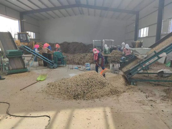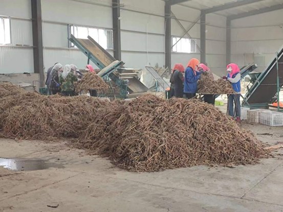齐家窝铺村中药材加工车间现场呈现一片繁忙景象