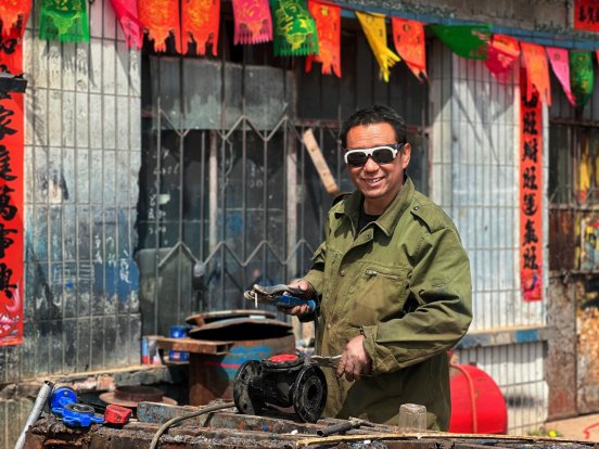 说话间发现,一个配件锻打下来,同样历经火烤、锤打的不仅是钢材,还有高健本人,几个回合下来,额头便浸满了细细密密的汗珠,衣裤上的细小破洞似乎向人讲述着这个行业的不易。“锤打的时候,被火星溅坏的。”高健语气淡然,“有空气锤以后好多了,至少不用抡大锤,不然,一锤下去,火花到处溅。”说罢不自觉地摩挲着膝盖,微微变形的左手布满旧伤痕。