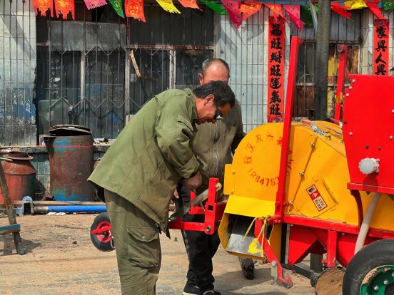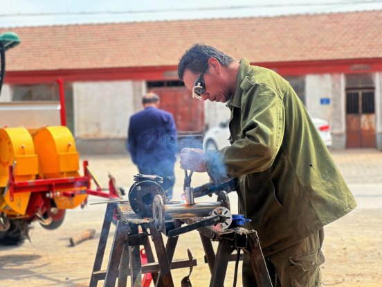 高健给村民修理农机具上的配件。(摄影:刘新娜)