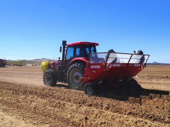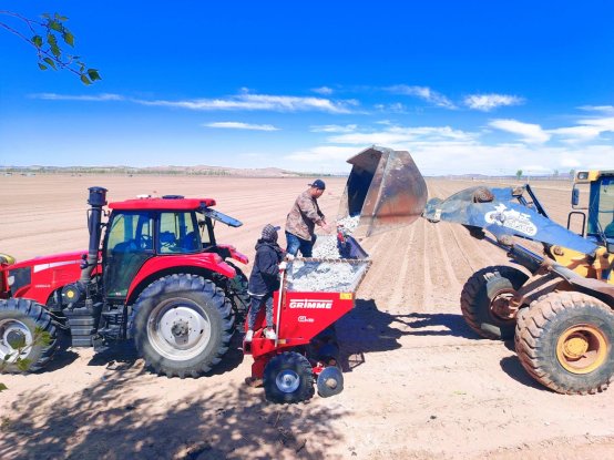 基地负责人介绍说:“现在全部是机械化播种,好处是播种、施肥、覆土可一次性完成。机械化种植具有保墒、省工、节种、节肥和深浅一致等优点,播种效率明显提高,成本大幅下降。我们种植土豆的发展模式是与企业合作,实行订单式发展,按每吨保底价1300元回收,通过这种发展模式,让我们销售这块不担忧。基地现有联合播种机4台,每天每台可播种100亩左右,预计10天左右播种工作全部完成。”