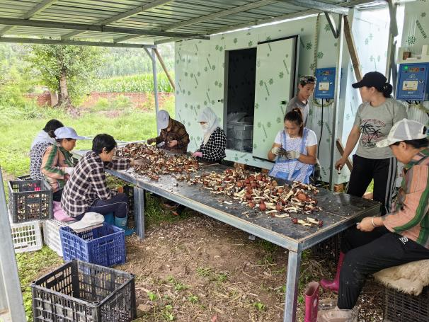 产业富民,结出丰硕增收果。赤松茸产业已成为新惠镇带动村民增收致富的重要引擎。作为一种劳动密集型产业,从最初的铺料、播种,到后期的采摘、分拣、打包等各个环节,都需要大量的人工投入,为周边村民提供了丰富的家门口就业机会。在付云飞书记的推动下,基地已累计带动村民务工620人次,实现增收7.5万元,务工村民人均日收入可达120元,有效拓宽了增收渠道。同时,项目还成功争取到北京海淀区3.2万元帮扶资金,精准补贴种植户,为产业发展增添了强劲动力。呼仁保团队精心打造的约9亩“试验田”更是喜获丰收,第一批亩产量就达到4800斤左右,品质优良的等内菇地头收购价稳定在7.3元/斤,实实在在地鼓起了村民的“钱袋子”,人均年增收可达万元以上。